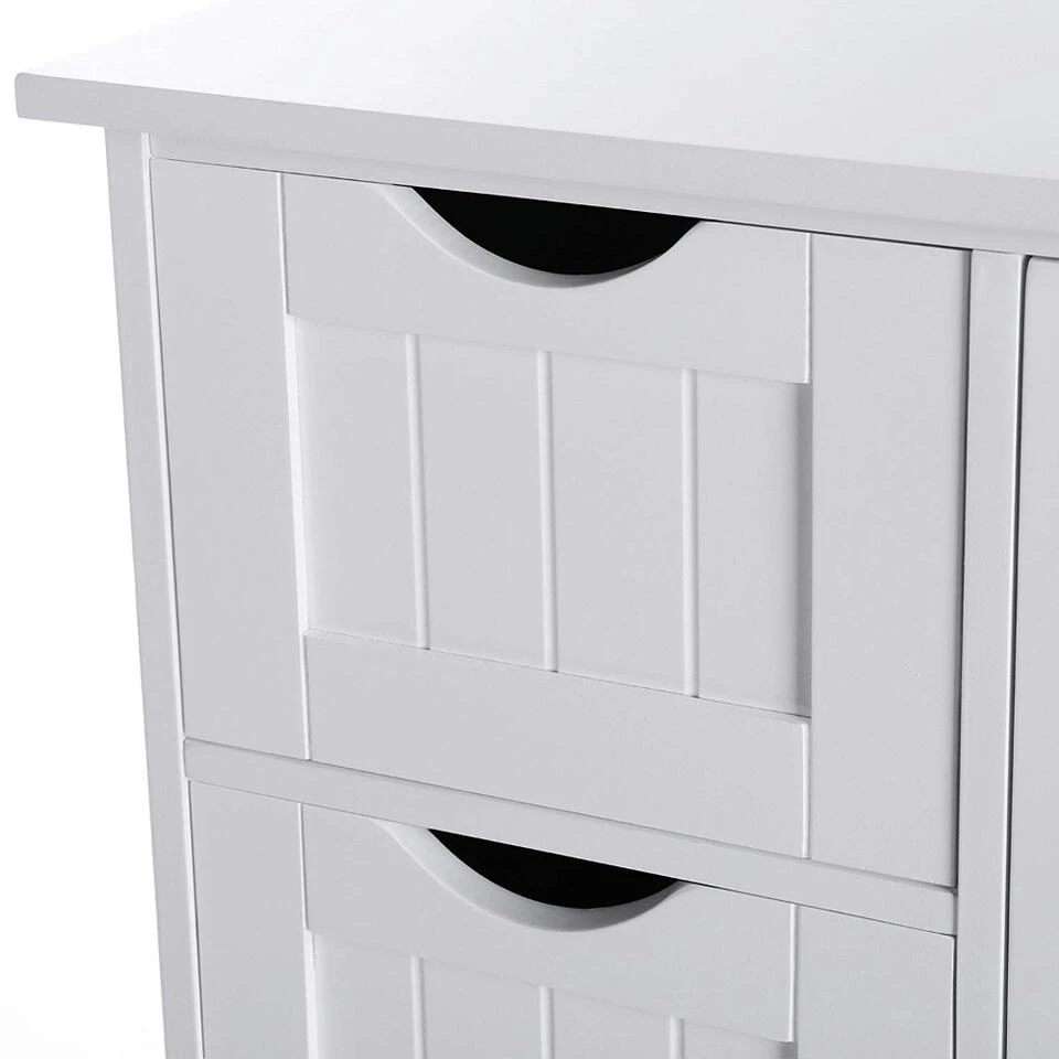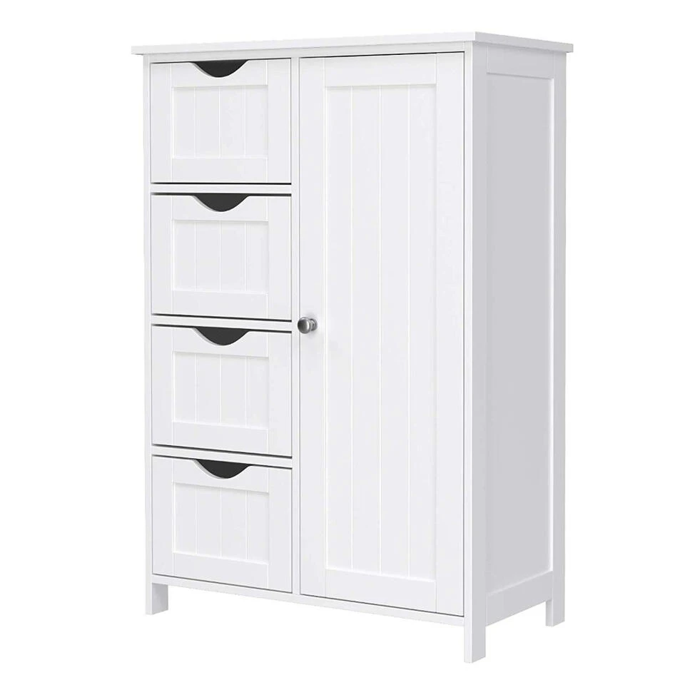 Concreet zal u voor een aantrekkelijke prijs een sober, maar stijlvol meubelstuk in huis halen. Bij de indeling werd gekozen voor een lade- en een kastcompartiment. De vier uitschuifbare lades zijn kleine vakken waar u parfums, doekjes, wc-rollen en zeepjes kwijt kan. De grotere kastruimte bevindt zich aan de rechterzijde van het meubelstuk en wordt onderverdeeld door een legplank. Dit gedeelte is ideaal om iets grotere objecten op te bergen.