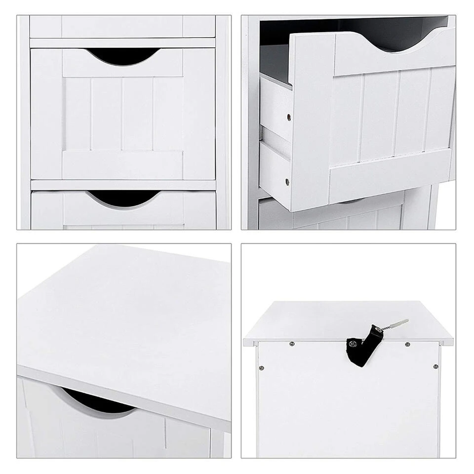 Deze zeer praktische ladekast zal perfect een plaatsje vinden in jouw badkamer. Met vier ruime vakken is er alvast aan opbergruimte zeker geen gebrek. Ook het bovenblad kan je praktisch benutten door er decoratie op te zetten. En dat is nog niet alles! Door een speciaal ontwerp kunnen de opberglades er bij het openen niet uitvallen. Super handig, niet? Het glanzende oppervlak is te danken aan een vernislaag die het meubel bovendien ook vochtbestendig maakt.