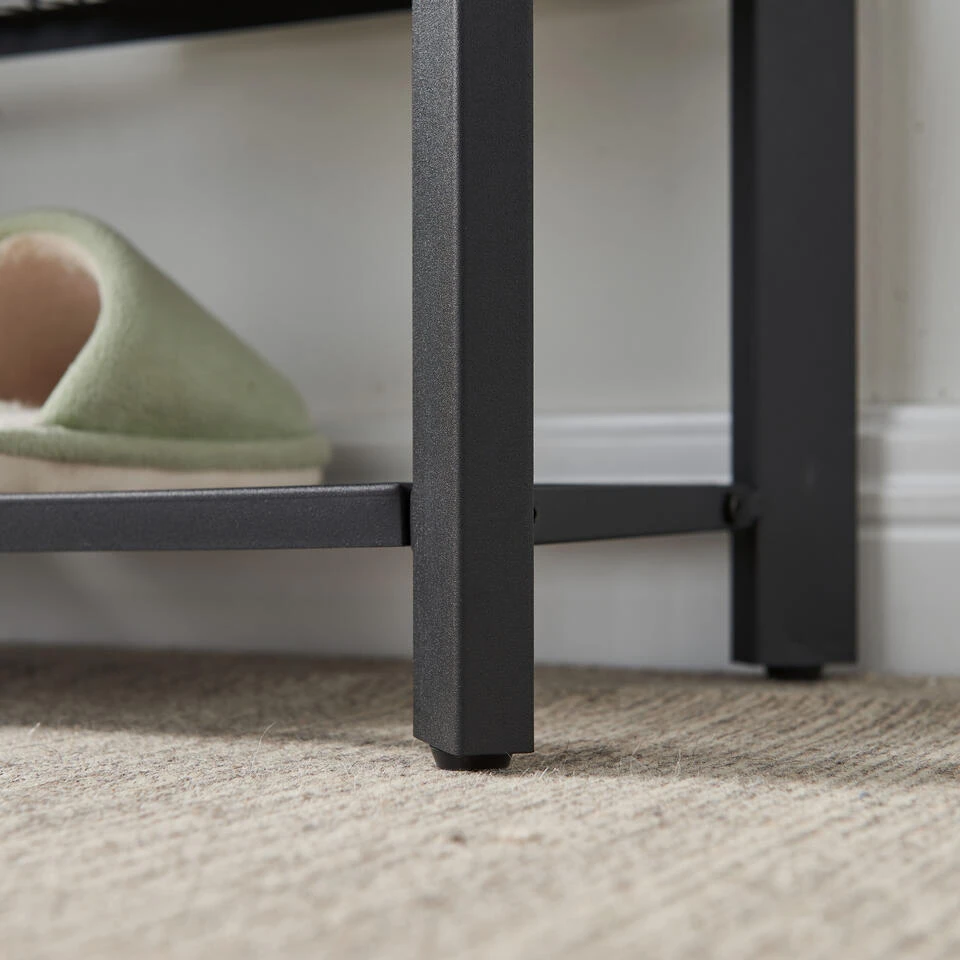 Dankzij de twee metalen roosters van dit schoenen rek is er voldoende plaats om jouw favoriete sneakers netjes op te bergen. Je kan op die manier tot wel acht paar schoenen verzamelen. Het solide metalen frame en het kwalitatieve houten blad zorgt ervoor dat je op het bankje kan plaatsnemen om je schoenen aan te trekken.