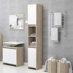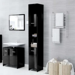 VidaXL Badkamerkast 30x30x183,5 Cm Spaanplaat Hoogglans Zwart