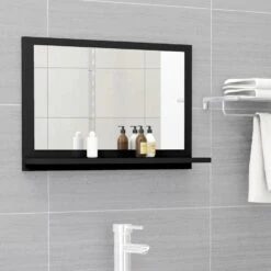VidaXL Badkamerspiegel 60×10,5×45 Cm Spaanplaat Hoogglans Zwart