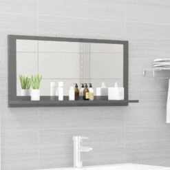 VidaXL Badkamerspiegel 90×10,5×37 Cm Spaanplaat Hoogglans Grijs