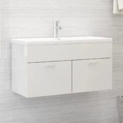 VidaXL Wastafelkast 90×38,5×46 Cm Spaanplaat Hoogglans Grijs