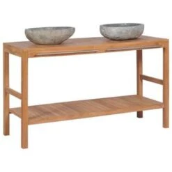 VidaXL Badkamer Wastafelkast Met Rivierstenen Wastafels Teakhout