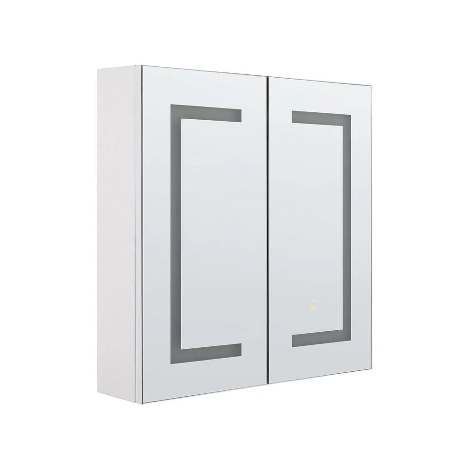 Spiegelkast met LED-verlichting voor de badkamer. Deze verlichte badkamerspiegel met geïntegreerde energiebesparende LED-balk kenmerkt zich door zijn moderne, elegante design. Er is voldoende ruimte achter de 2 spiegeldeuren om verschillende dingen zoals tandenborstels of parfums op te bergen. De scharnieren met softlock zorgen ervoor dat de deur zachtjes opent en sluit. De tuimelschakelaar aan de zijkant zorgt ervoor dat de LED-lamp eenvoudig aan en uit kan worden gezet.
