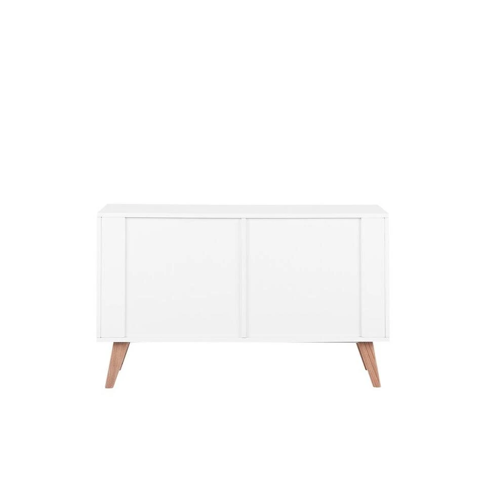 Functionele, praktische en decoratieve ladekast in klassiek wit. Ordening dankzij veel opbergruimte en tegelijkertijd decoratief en modern design – dit dressoir maakt het mogelijk! Het tijdloze ontwerp in eenvoudig wit harmonieert prachtig met de slanke, enigszins schuine poten van licht eiken. De heldere, frisse kleuren zorgen voor een vriendelijke sfeer. De zes praktische en ruime laden met interne afmetingen bieden veel opbergruimte.