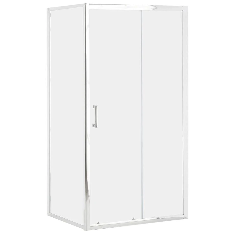 Vierkante douchecabine met deur. Verfris jouw badkamer en voeg er deze functionele aandachtstrekker aan toe. Deze douchecabine is gemaakt van duurzaam en gemakkelijk te onderhouden gehard glas en zal jouw tijd in de badkamer nog beter maken. De zilverkleurige, hoogglanzende afwerking draagt bij aan het moderne ontwerp, terwijl de schuifdeur ervoor zorgt dat je je kamer droog houdt, zelfs als je langere tijd onder de douche staat.