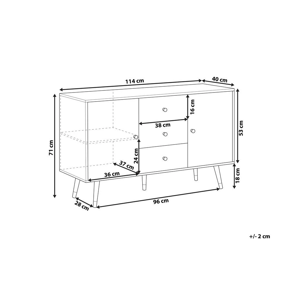 Belangrijkste eigenschappen: Handige lades met degelijk mechanisme, Retro Stijl, Hout-look finish voor een natuurlijke look, Beschermdoppen voor oppervlaktebescherming, Functionele, grote opbergruimte