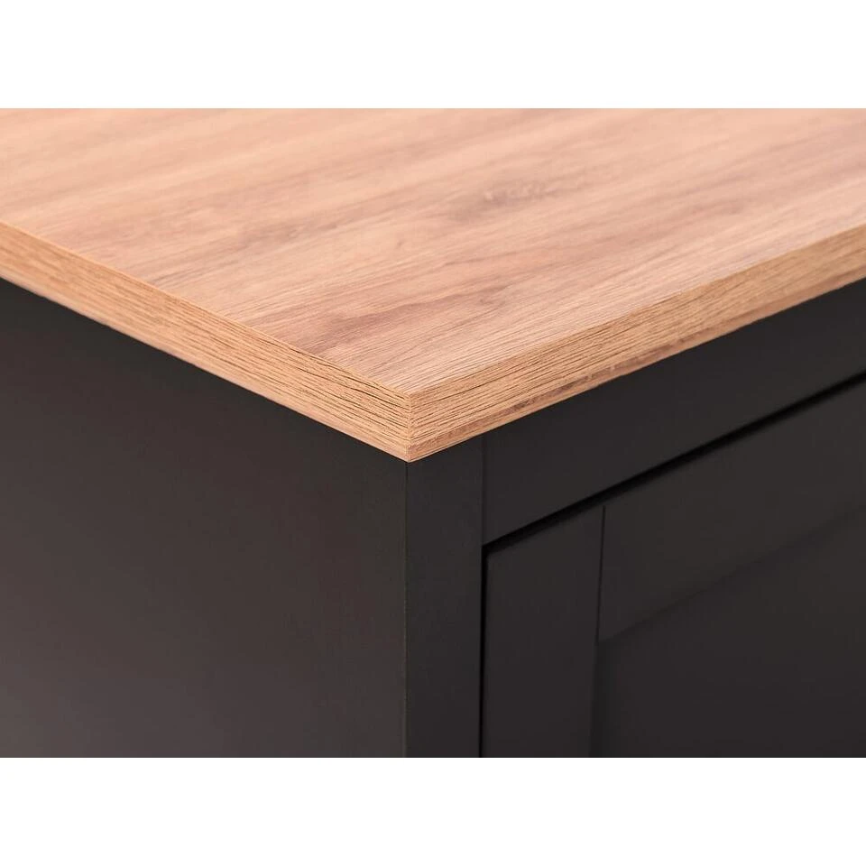 Retro TV-meubel in grijs. Deze retro-geïnspireerde tv-standaard past in elke moderne of traditionele woonkamer. Hij is ontworpen met een kabelopening waardoor je extra apparatuur kunt plaatsen, zoals een speler of console. Twee gesloten planken met vakken zijn perfecte plekken voor een verzameling dvd’s en games. De grijze kleur van de fronten harmonieert perfect met het tafelblad en de lade afgewerkt met een laminaat dat licht hout imiteert.