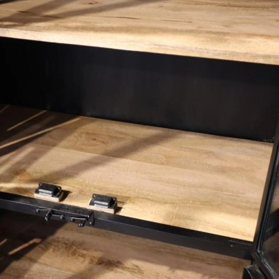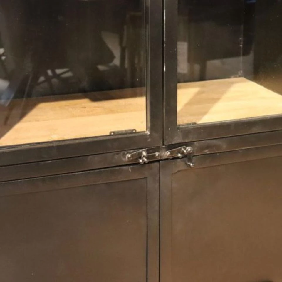 Deze Garcia vitrinekast is ruw en stoer. De handvaten en scharnieren vallen meteen op. Ze geven een nog robuuster karakter aan de kast. De naturel houten legplanken geven een warme uitstraling aan de kast. De fijne poten zorgen op hun beurt voor een elegant voorkomen. Dit maakt dat deze kast zowel in industriële, moderne als landelijke interieurs past.