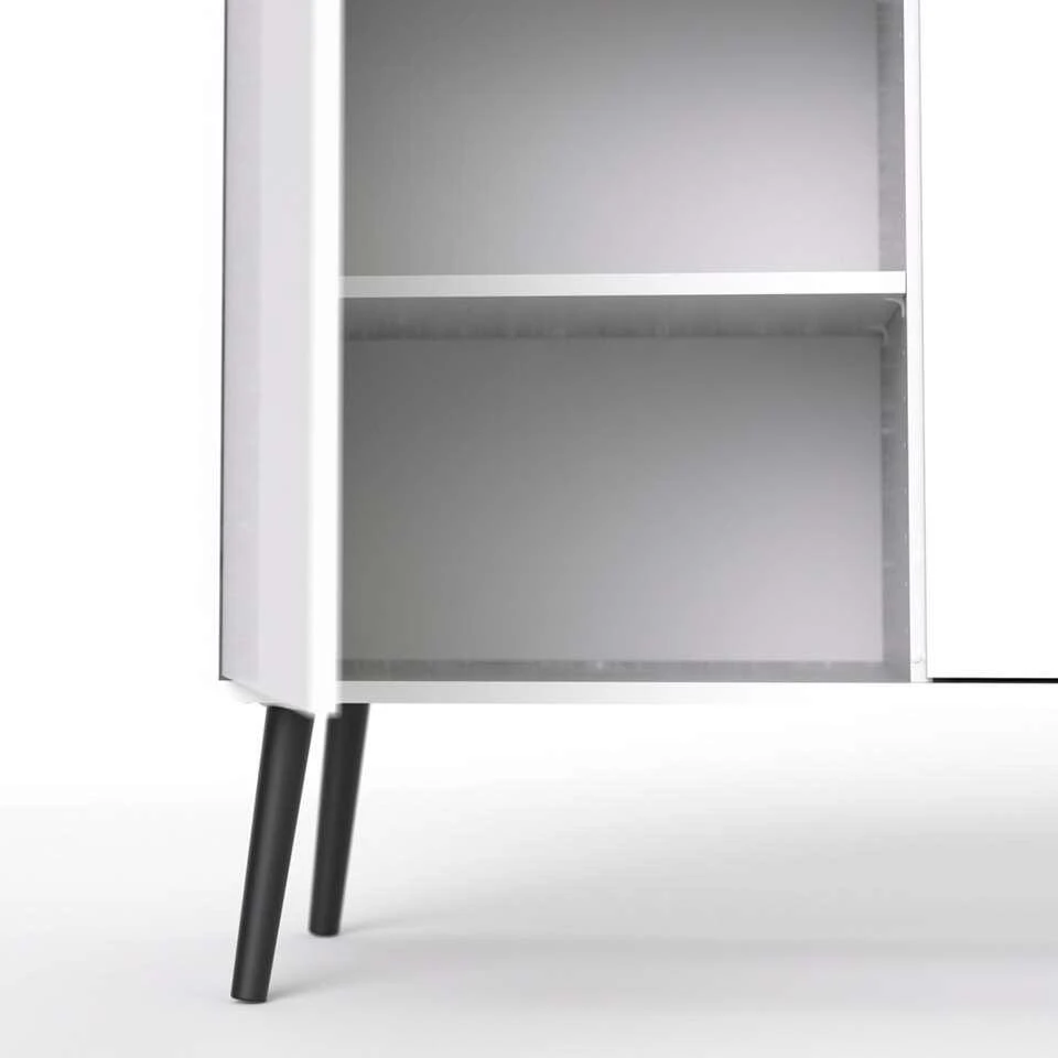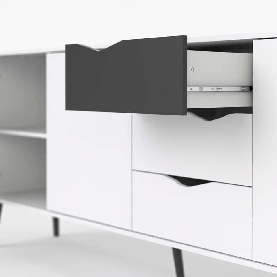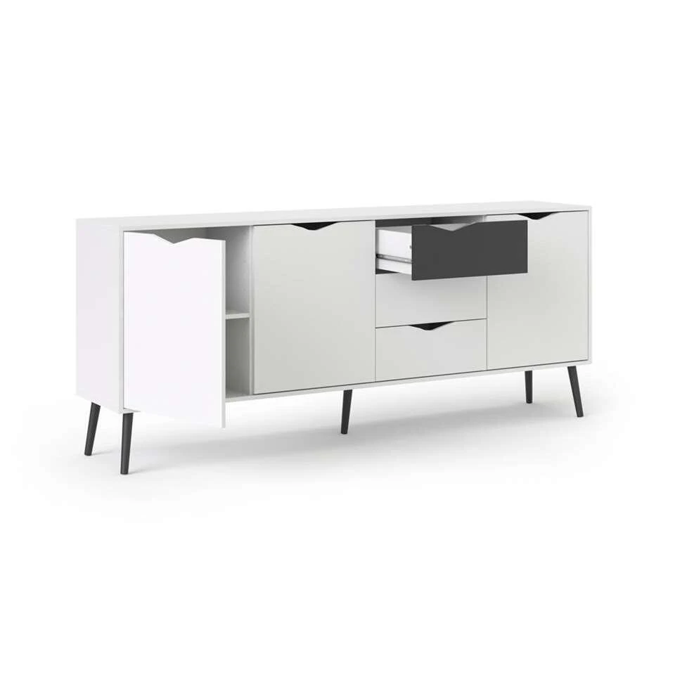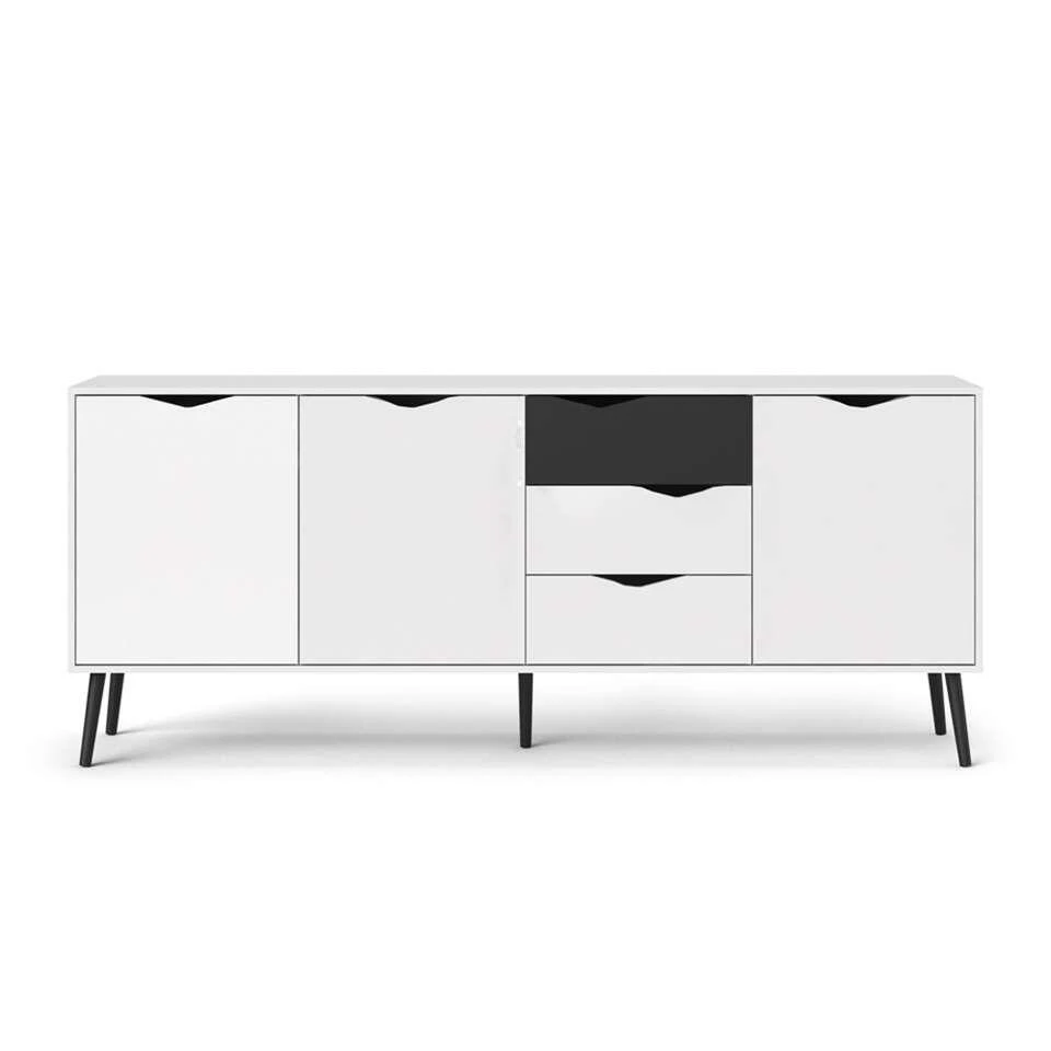 Dressoir Delta is een moderne kast voor in de woonkamer of de slaapkamer. De Delta heeft een strakke vormgeving en is wit met zwart van kleur. Deze ruime en praktische kast staat goed in elk modern interieur. Berg alles netjes op in ladekast Delta. Dit praktische en stijlvolle meubel is gemaakt van spaanplaat.