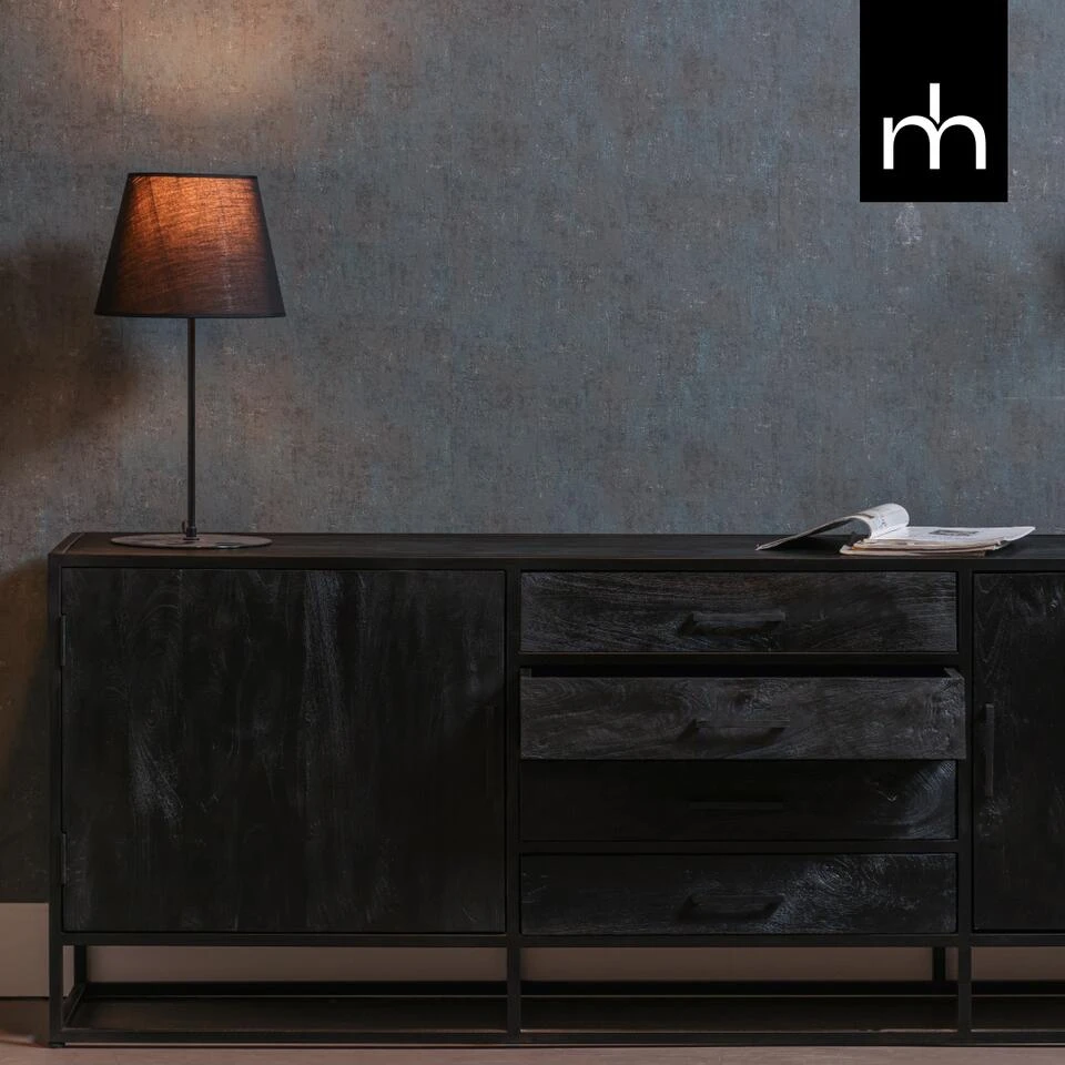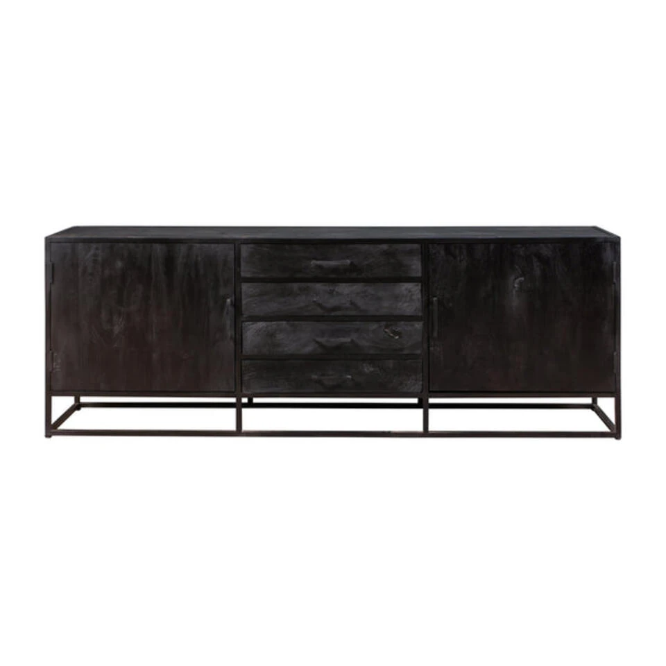 Met de brede variant van het Dressoir Florence voegt u een ruim en stijlvol meubel toe aan uw huis. Het zwarte mangohout in combinatie met het zwarte metaal past uitstekend in ieder interieur. Dankzij de twee kastjes en de vier brede lades beschikt het meubel over veel ruimte om allerlei eigendommen op te kunnen bergen.