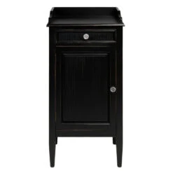 Het compacte houten dressoirtje heeft een deurtje met daarachter een legplank en een lade voor al je kleine prulletjes. Bijzonder is ook het opstaande randje van het bovenblad dat βm nΓ©t even anders maakt. Dit kleine zwarte brocante kastje heeft een wit broertje dat er door zijn kleur meteen compleet anders uitziet! Om je keuken, woonkamer of hal helemaal af te maken, vind je daarnaast een matching zwart of wit medium-dressoir met diezelfde houten details. Leuk toch, om dit stijltje zo lekker door te zetten?Β Β
