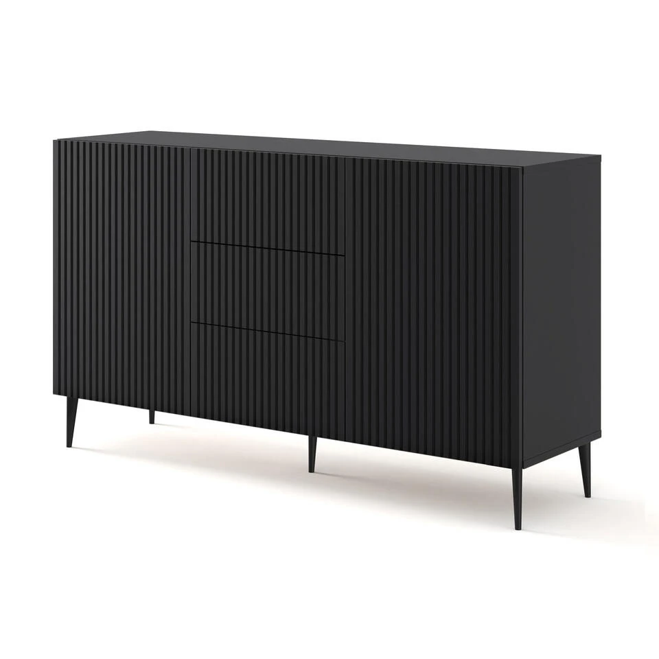 Meubels uit de gepresenteerde Ravenna-collectie worden gekenmerkt door elegantie en unieke uitstraling. Ze zullen geschikt zijn voor moderne arrangementen, het interieur van de woonkamer of eetkamer veranderen. De eenvoud van de vormen harmonieert perfect met de gefreesde fronten. Metalen poten in de vorm van pinnen die het lichaam ondersteunen, benadrukken de stijlvolle uitstraling en zorgen voor stabiliteit, en greeploze fronten voegen een modern design toe.