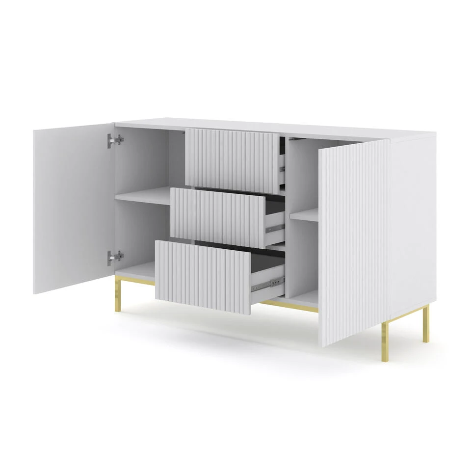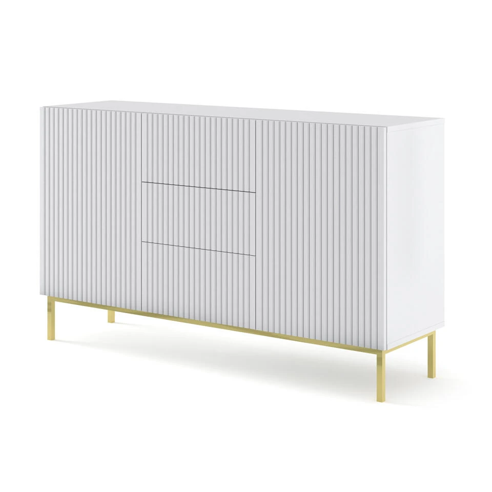 Meubels uit de gepresenteerde Ravenna-collectie worden gekenmerkt door elegantie en een uniek uiterlijk. Ze zullen geschikt zijn voor moderne arrangementen en het interieur van de woonkamer of eetkamer veranderen. De eenvoud van de vormen harmonieert perfect met de gefreesde fronten. Het metalen frame ondersteunt de body zorgt voor stabiliteit en voegt stijl en expressiviteit toe.