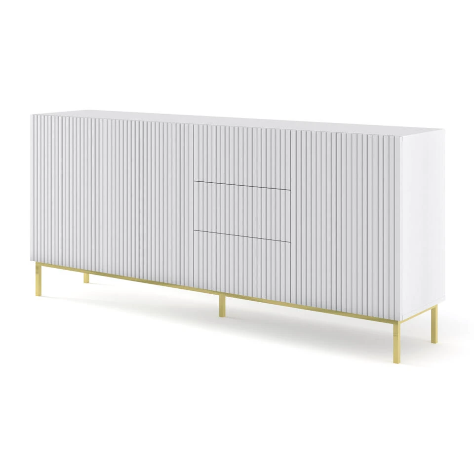 Meubels uit de gepresenteerde Ravenna-collectie worden gekenmerkt door elegantie en een uniek uiterlijk. Ze zullen geschikt zijn voor moderne arrangementen en het interieur van de woonkamer of eetkamer veranderen. De eenvoud van de vormen harmonieert perfect met de gefreesde fronten. Het metalen frame ondersteunt de body zorgt voor stabiliteit en voegt stijl en expressiviteit toe.