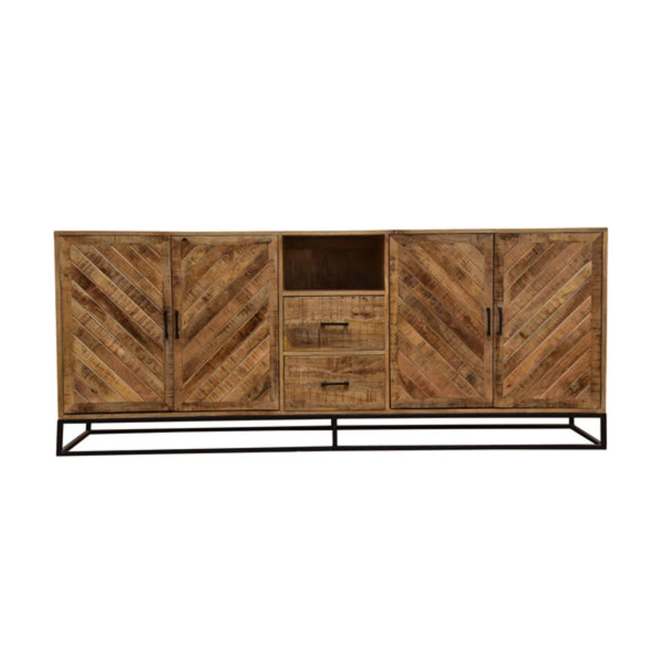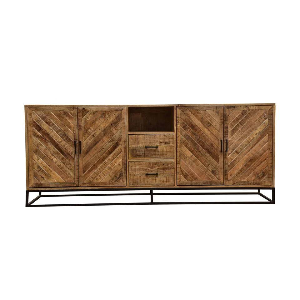 Voor het grootste dressoir uit de Reno-collectie wilt u zeker wel wat ruimte vrij maken! Dankzij het unieke motief heeft het meubel een stoere, maar toch ook chique karakter, zodat het meubel door iedereen gewild is. Het dressoir herbergt in de kastjes veel ruimte om grote spullen op te bergen en dankzij het open vak boven de twee ruime lades kan de kast ook als hoog televisiemeubel gebruikt worden.