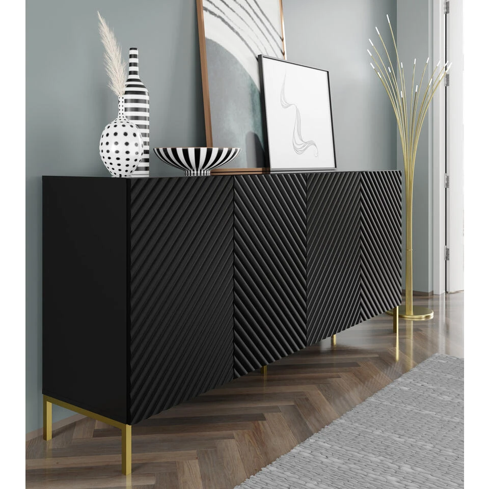 Dressoir SURF 87x200x42 Zwart / Kleur: Zwart / Productmaat: 87x200x42 / Materiaal: MDF
