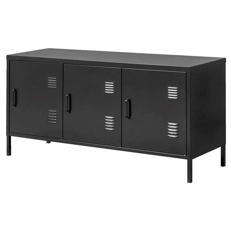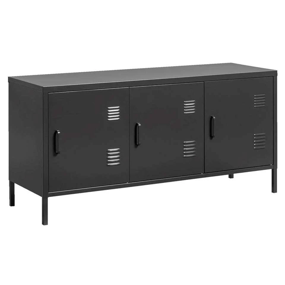 Dressoir Viborgis een stoere kast met locker look en is daardoor een echte eyecatcher in hetinterieur. De kast is van metaal en heeft drie deuren wat hem ook nog eens ergpraktisch maakt voor het opbergen van spullen. Waar je hem ook zet; de kastzorgt voor een trendy en industriële touch in het interieur. De volledige (hxbxd)afmeting van de kast is 59,5x120x40 cm.