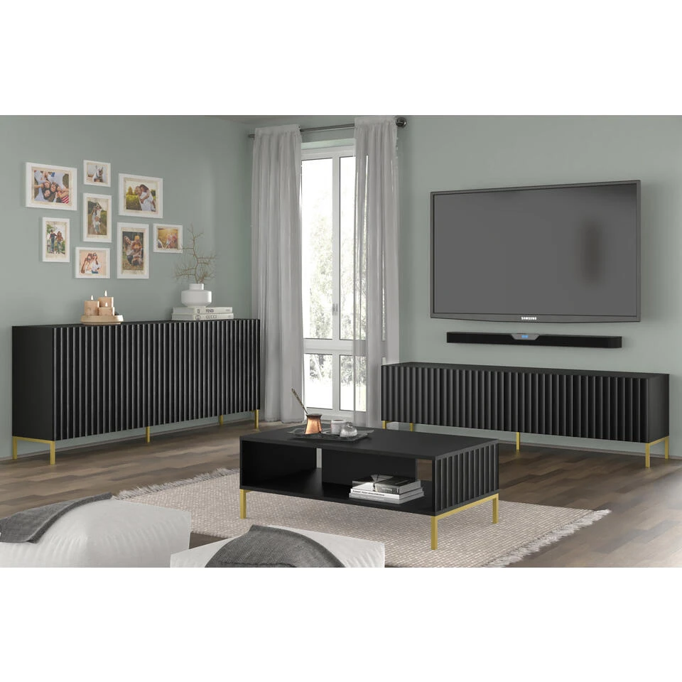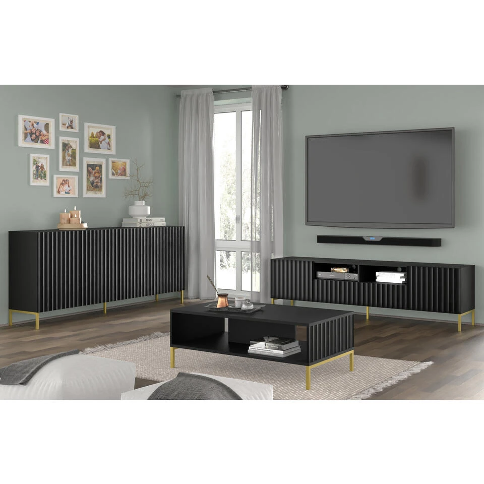 Dressoir SURF 87x200x42 Zwart / Kleur: Zwart / Productmaat: 87x200x42 / Materiaal: MDF