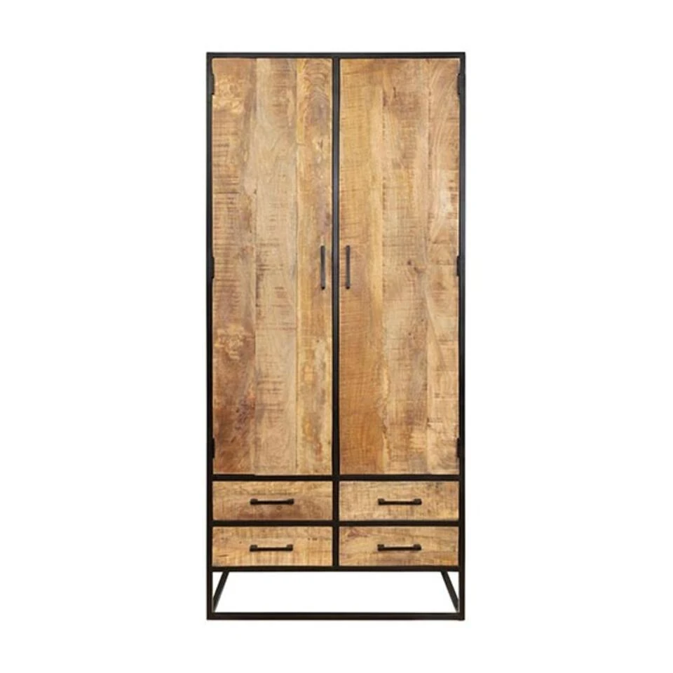 Een wandkast als deze Morada kast zou in geen enkele woning mogen ontbreken. Het is een zeer praktische kast omdat je er heel veel in kwijt kan. Maar het is tegelijkertijd ook een pronkstuk. Het stoere zwarte frame en de idem dito zwarte handvaten vormen een mooi contrast met het warme mangohout.