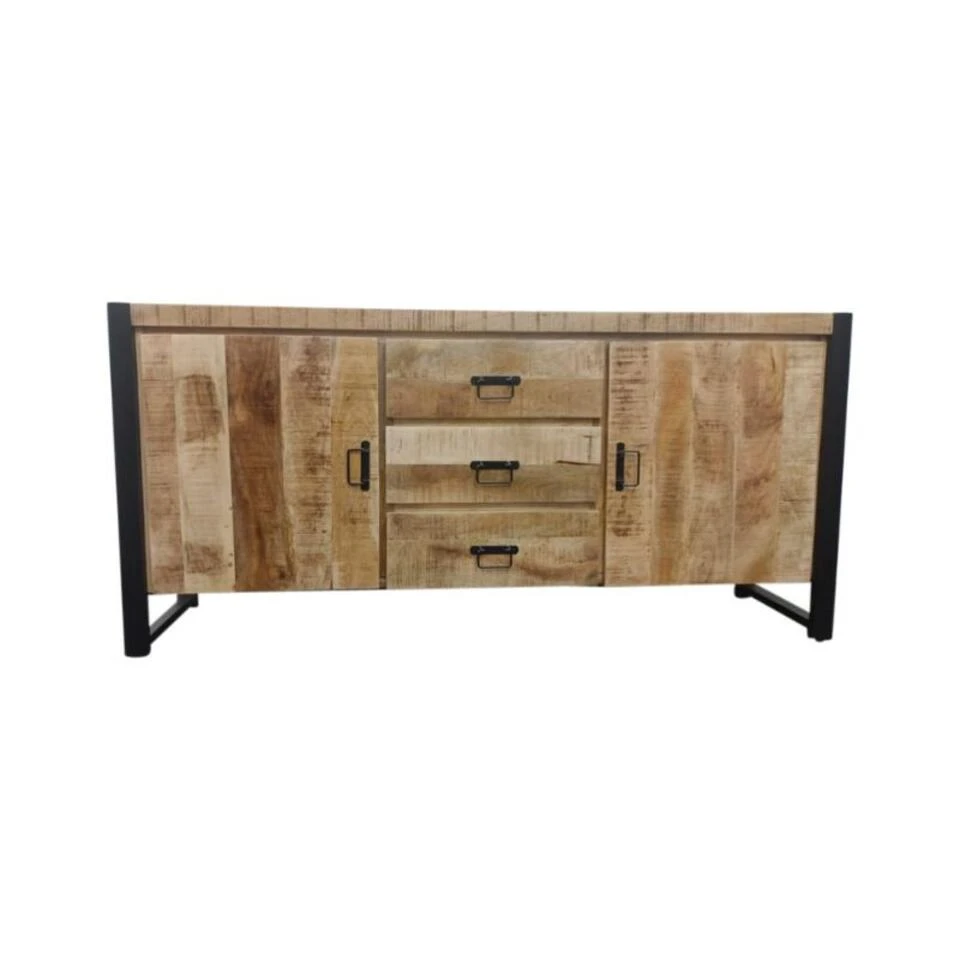 Bij deze Odeon dressoirkast valt onmiddellijk de opbouw op. Het frame en de poten vormen één geheel. Dit maakt de kast nog robuuster. De bijzondere structuur van het mangohout geeft een extra boost aan de kast. Het is een dressoir die bij diverse stijlen past: industrieel, landelijk, vintage of modern bijvoorbeeld. In dezelfde serie Odeon vind je nog andere kasten en diverse tafels. We hebben ook varianten die volledig in zwart zijn uitgevoerd.