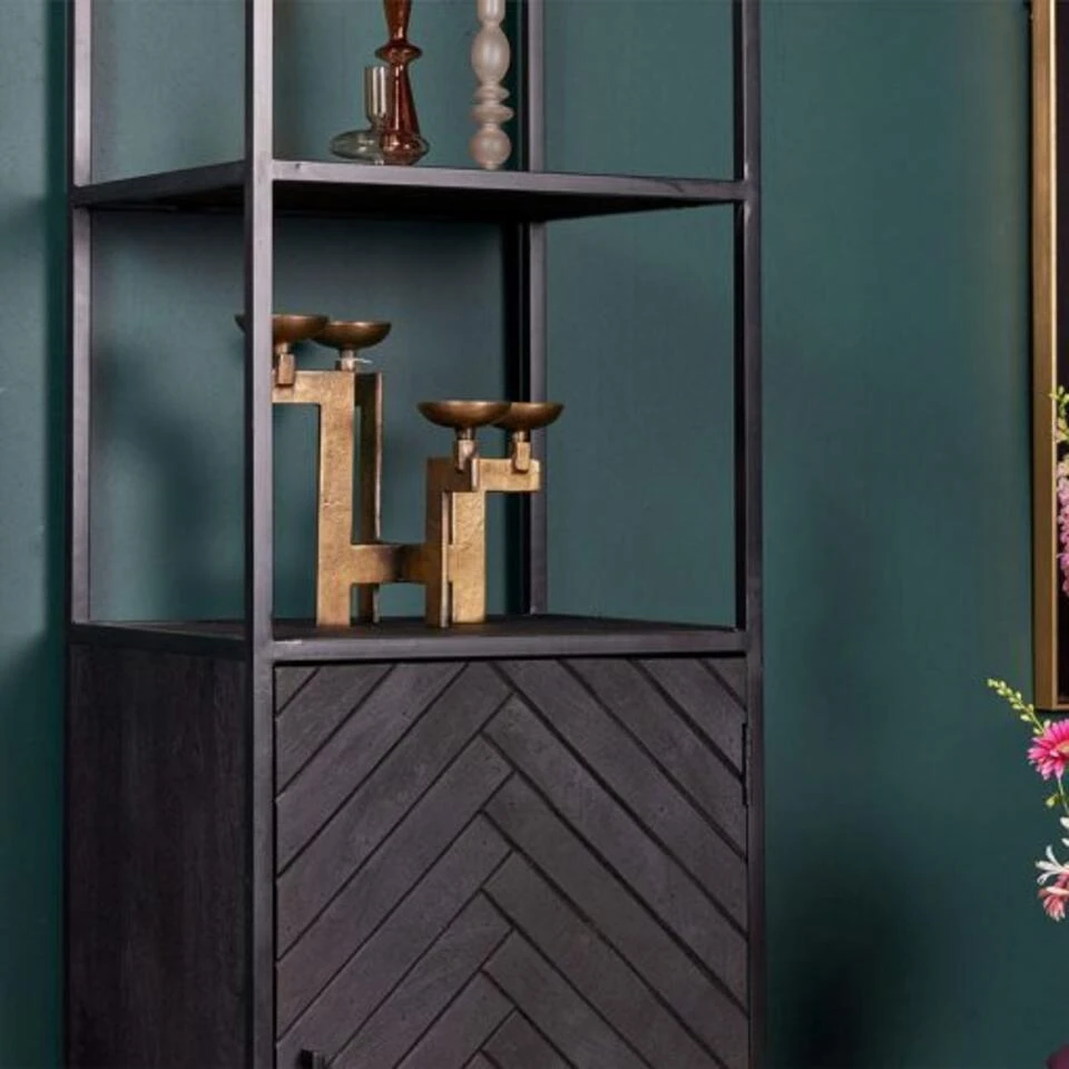 Deze volledig zwarte boekenkast brengt een grote dosis intieme sfeer in je woning. Je combineert ze makkelijk met andere donkere tinten: petroleumblauw, donkergroen en natuurlijk ook met zwart. Of je maakt bijzondere combinaties tussen deze zwarte kast en bijvoorbeeld okergeel, cognac, poederroze of taupe. Je zet ze in als boekenkast, maar je kunt ze ook als alternatieve vitrinekast gebruiken. Welke functie je er ook aan geeft, ze tilt je interieur naar een hoger niveau.