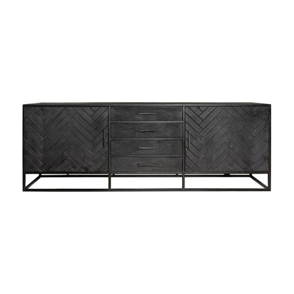 Zoek je een dressoir die tegelijk stoer, bijzonder, eigenzinnig en elegant is? Dan zit je met deze Scandi zwarte dressoirkast perfect. De visgraatstructuur van het hout geeft aan deze kast een uniek karakter. Het vormt een mooi contrast met de strakke lijnen van het frame. Bekijk zeker ook de naturel houten variant, het verschil is groot. Aan jou de keuze!