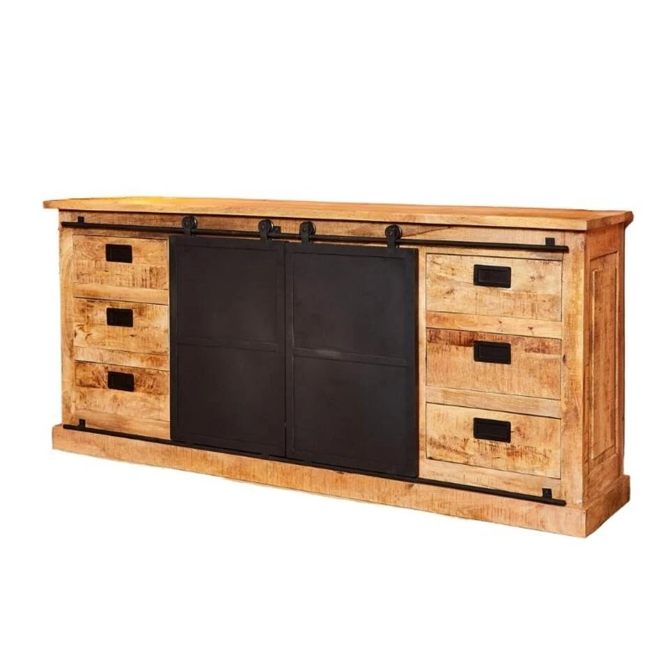 Je combineert deze dressoir met houten trappen in je landelijke woning en met zwart metalen raamkozijnen in je industriële woning. Tegen een moderne witte muur of op een lichtgrijze betonvloer komt het eveneens helemaal tot zijn recht. Hang er een mooie stoere wanddecoratie of een spiegel boven, plaats er een tafellamp, een vaas of een plant op en de sfeer is meteen gezet.