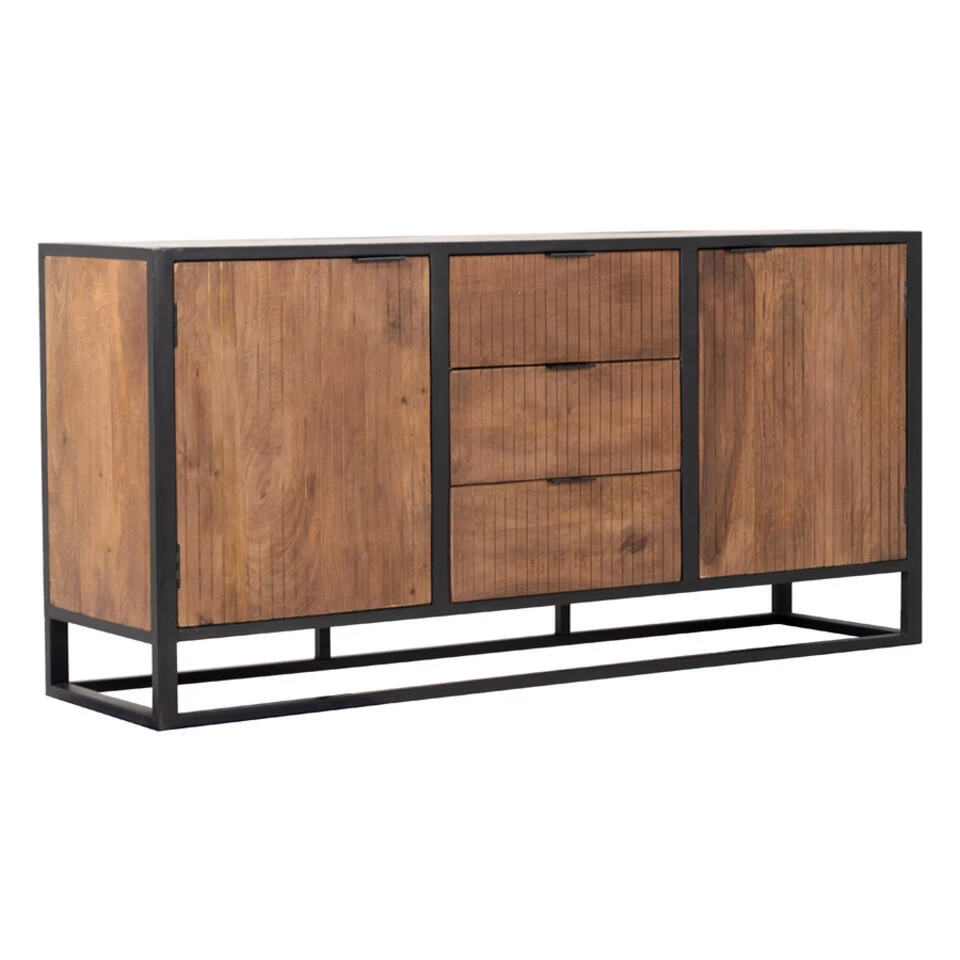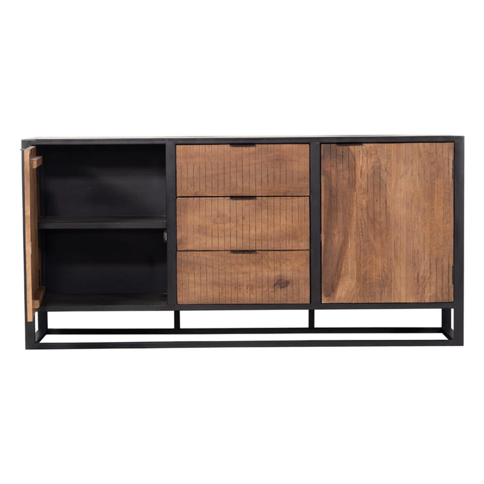 Brandy heeft een industriële uitstraling. Het dressoir is vervaardigd uit zwart ijzer en mango hout. Het dressoir heeft 3 lades en 2 dichte vakken achter deuren voor het opbergen van je spullen. Brandy is een ware eyecatcher in je woonkamer en past in diverse interieur stijlen. Dressoir Brandy is 180cm breed, 45cm diep en 87cm hoog. Onze kasten bestaan uit één geheel en zijn daardoor geen bouwpakket. De kasten zijn gemaakt van massief staal waardoor de kwaliteit en de levensduur gewaarborgd is. Het enige wat je hoeft te doen is de kast uitpakken en op de gewenste plek neerzetten. Je kunt gemakkelijk en snel genieten van je Giga kast!