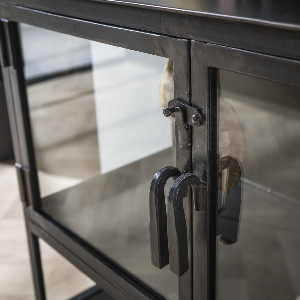 Dit dressoir ‘Ruff metal’ is uitgevoerd gun metal. Het dressoir is voorzien van een vier glazen deuren en biedt dus voldoende ruimte om spulletjes op te bergen of leuk te decoreren. Het dressoir beschikt over een open vak om bijvoorbeeld boeken te plaatsen. Dit dressoir wordt opgebouwd geleverd en maakt deel uit van de ‘Ruff metal’ serie.