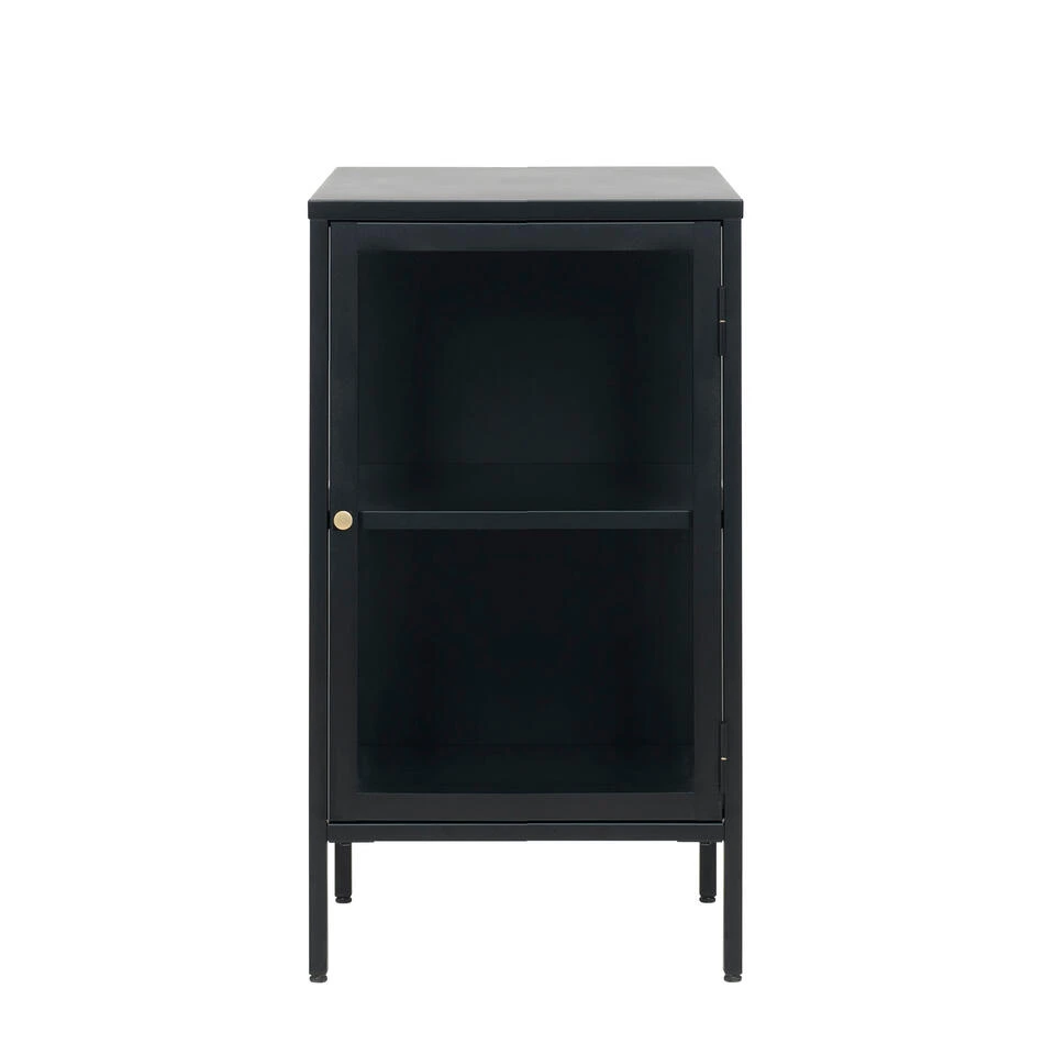 Super mooie vitrinekast in zwart gepoedercoat metaal met glas aan de deuren en zijkanten. Gebruik de kast om je mooie, gedenkwaardige decoratieve items te tonen of om je handdoeken, boeken, servies en nog veel meer in op te bergen. Dressoir Carmen Zwart – Giga Living. Is dit het artikel voor jou? Bestel Dressoir Carmen Zwart – Giga Living dan nu direct!