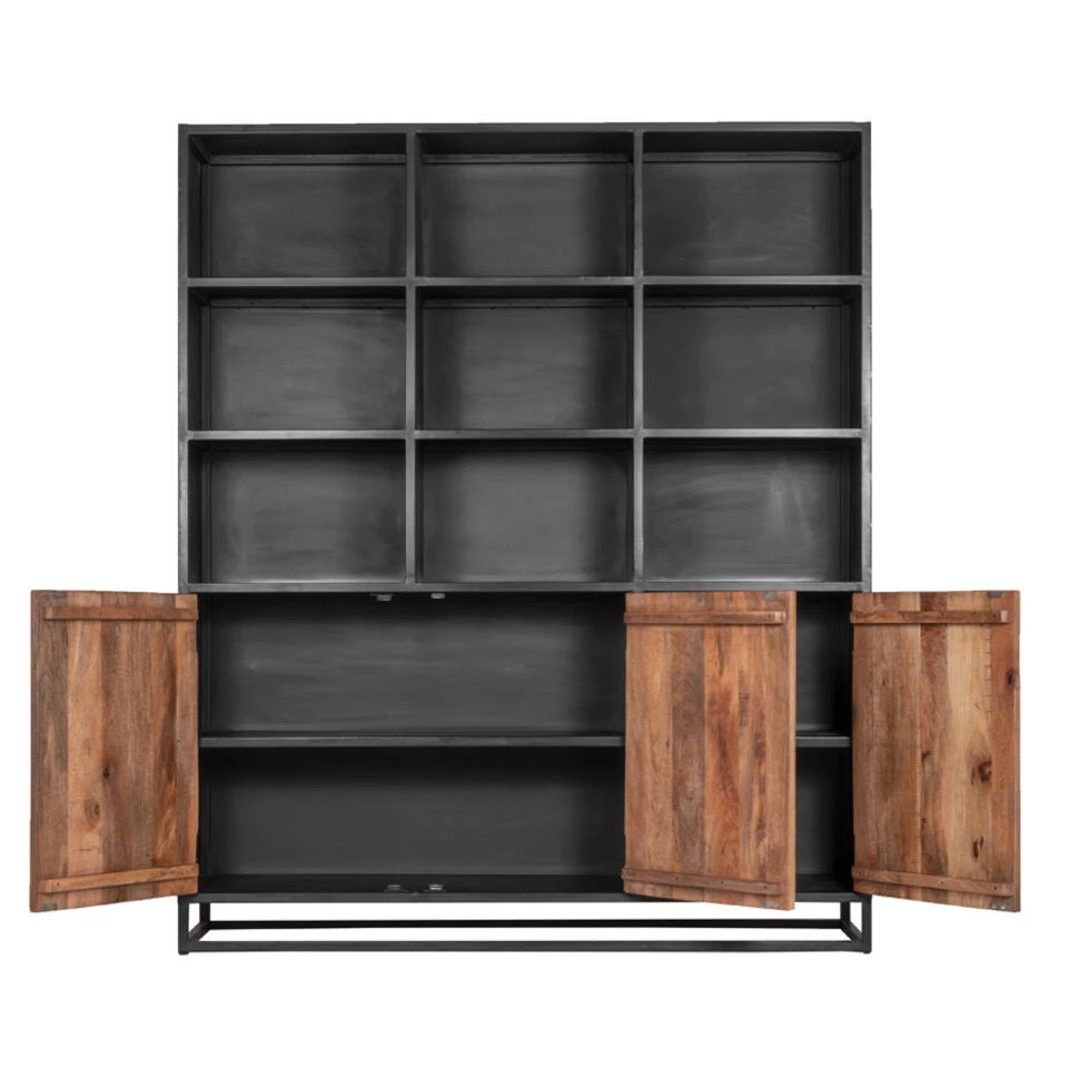 Alle woon- en eetkameritems plaats je meteen in deze vitrinekast. Jouw meest favoriete items kunnen mooi tentoon gesteld worden. Alles wat je liever geborgen houdt zet je in het onderste gedeelte. De kast biedt genoeg ruimte voor jouw mooiste spullen. Onze kasten bestaan uit één geheel en zijn daardoor geen bouwpakket. De kasten zijn gemaakt van massief staal en mango hout waardoor de kwaliteit en de levensduur gewaarborgd is. Het enige wat je hoeft te doen is de kast uitpakken en op de gewenste plek neerzetten. Je kunt gemakkelijk en snel genieten van je Giga kast!