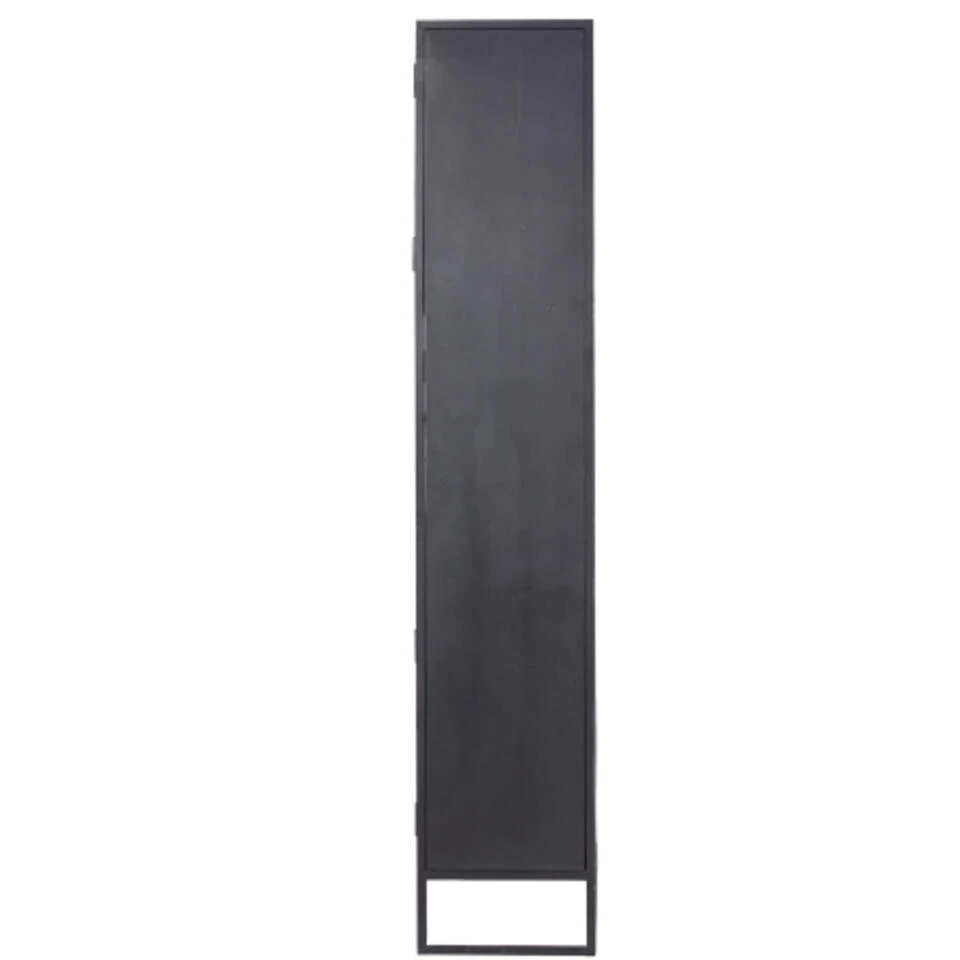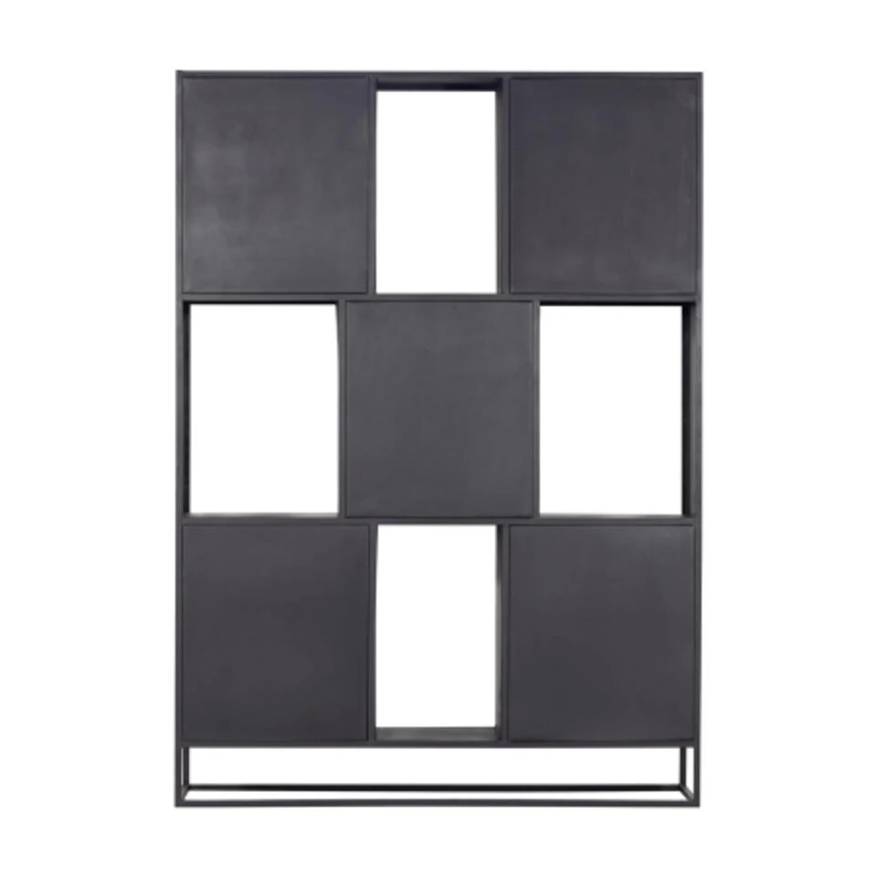 Deze kast is vervaardigd uit zwart ijzer en mango hout. De kast heeft 4 open vakken voor het tentoon stellen van je mooiste spullen. Deze kast heeft ook 4 grote vakken met deuren voor het opbergen van je spullen. Een ware eyecatcher in je woonkamer en past in diverse interieur stijlen.