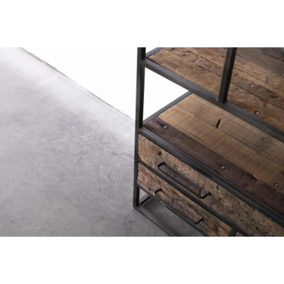 Deze wandkast is gemaakt van hout met een zwart afgewerkt metalen frame. De kast heeft erg veel mogelijkheden door de combinatie van lades en planken. Hierdoor kan je deze wandkast gebruiken voor jouw mooiste spullen die je in het zicht wil hebben staan. Maar ook voor de spullen die je liever niet in het zicht hebt staan.