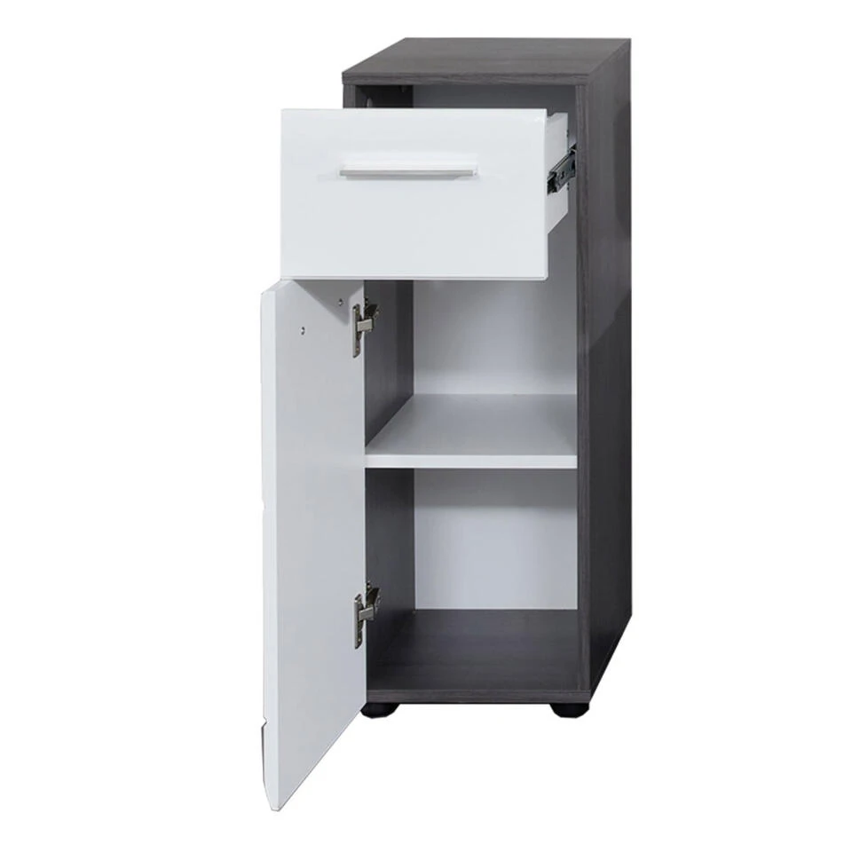 LineBad badkamerkast 1 deur, 1 lade gerookt zilver, wit hoogglans. 1 legplank. Je ontvangt meubels van een goede kwaliteit met een aangenaam comfort, gemaakt in een stijlvol en mooi design. Onze meubels zijn zeer aantrekkelijk geprijsd. Creëer uw eigen persoonlijke stijl met een nieuw meubel. Combineer met kleinmeubels of een paar mooie woonaccessoires. Hier verkrijg je de nieuwe woningtrends, zoals je ze in tijdschriften en magazines ziet. Bij ons vindt u unieke, praktische en comfortabele meubels met elk zijn eigen, mooi en apart design.