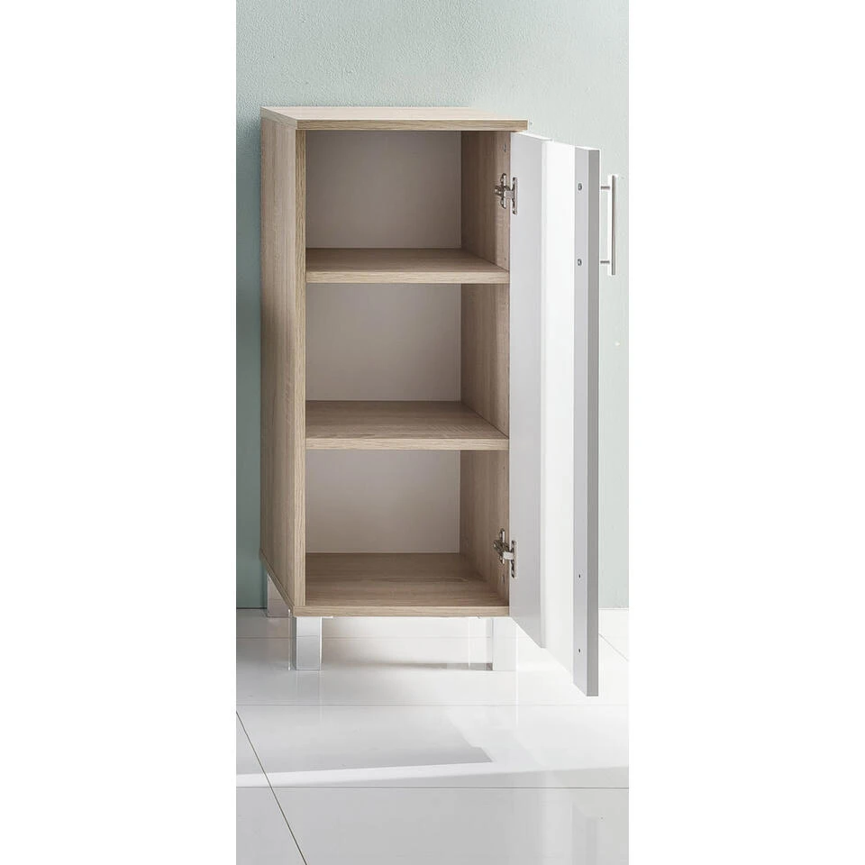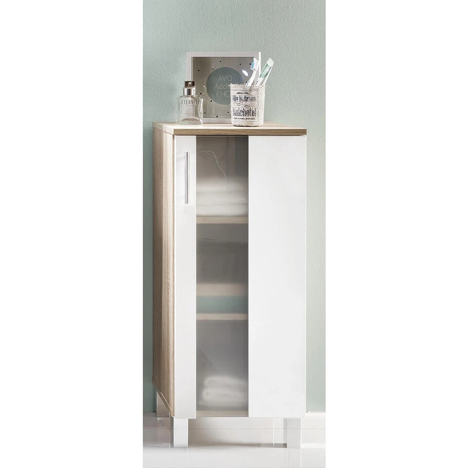 PortoBad badkamerkast 1 deur eiken decor, wit, gesatineerd glas. 2 legplanken. Je ontvangt meubels van een goede kwaliteit met een aangenaam comfort, gemaakt in een stijlvol en mooi design. Onze meubels zijn zeer aantrekkelijk geprijsd. Creëer uw eigen persoonlijke stijl met een nieuw meubel. Combineer met kleinmeubels of een paar mooie woonaccessoires. Hier verkrijg je de nieuwe woningtrends, zoals je ze in tijdschriften en magazines ziet. Bij ons vindt u unieke, praktische en comfortabele meubels met elk zijn eigen, mooi en apart design.