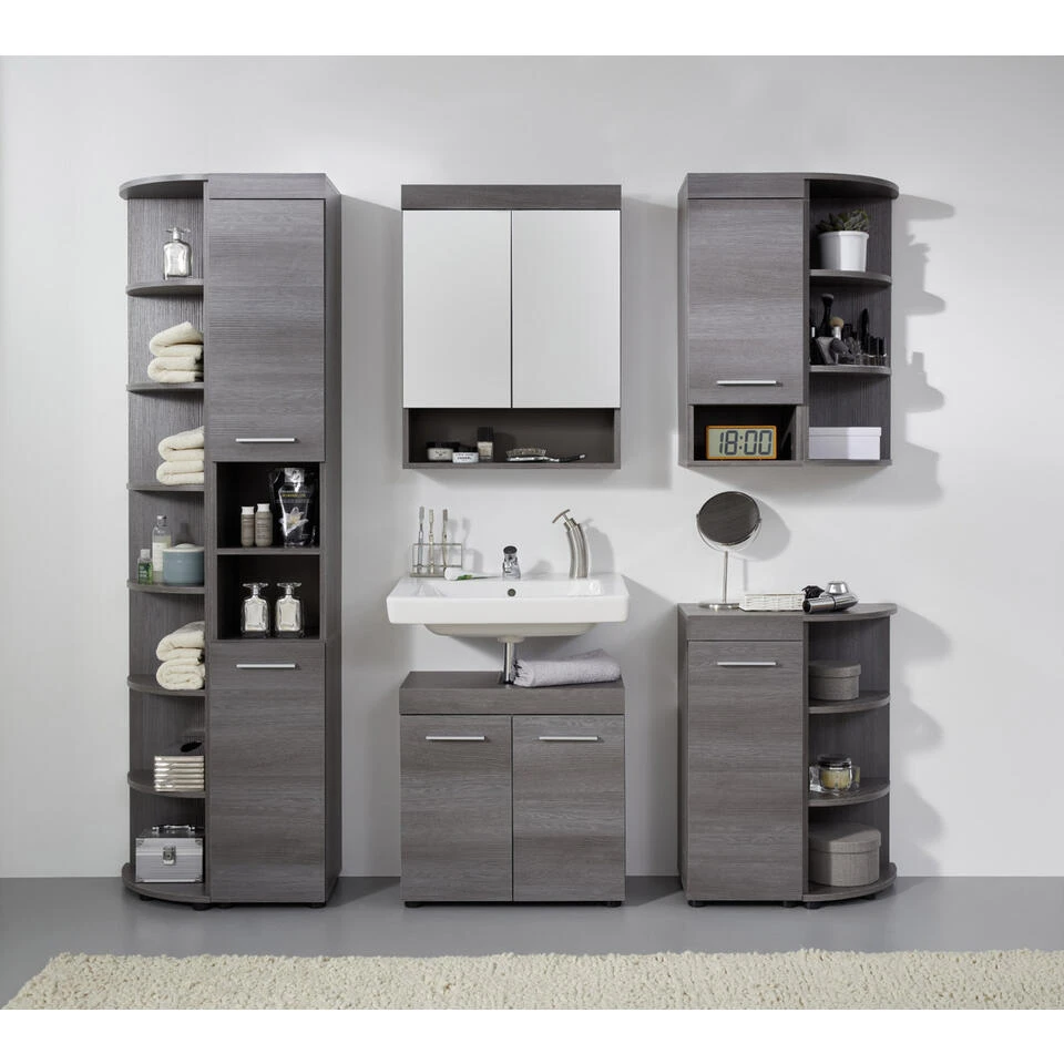 Runner,MoonBad badkamerkast 3 open vakken rookzilver donker. 2 constructieplanken. Kleur behuizing: Sardegna rookzilver melamine. Kleur voorkant: Sardegna rookzilver melamine. Je ontvangt meubels van een goede kwaliteit met een aangenaam comfort, gemaakt in een stijlvol en mooi design. Onze meubels zijn zeer aantrekkelijk geprijsd. Creëer uw eigen persoonlijke stijl met een nieuw meubel. Combineer met kleinmeubels of een paar mooie woonaccessoires. Hier verkrijg je de nieuwe woningtrends, zoals je ze in tijdschriften en magazines ziet. Bij ons vindt u unieke, praktische en comfortabele meubels met elk zijn eigen, mooi en apart design.