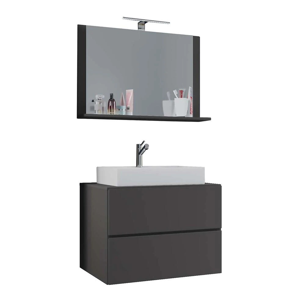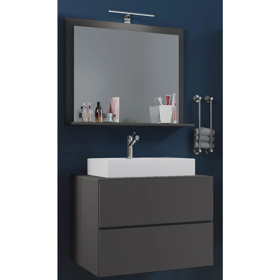 LendasM badkamer 80 cm, spiegel, antraciet. 1 badmeubel met wastafel zonder kraan, 2 laden, spiegel 80 cm zonder licht. Binnen: 2 laden. Spiegel: