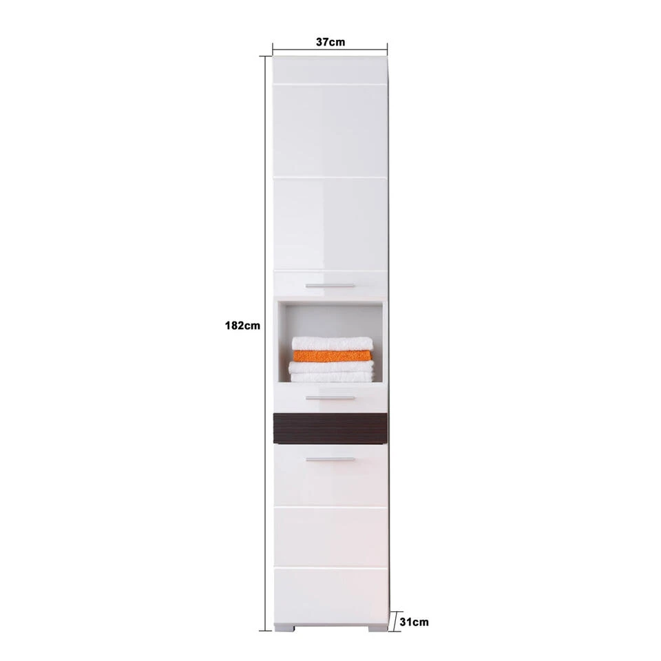 MezzoBad kolomkast hoog 2 deuren, 1 lade, 1 open vak wit, wit hoogglans, decor Melinga donker eiken. Je ontvangt meubels van een goede kwaliteit met een aangenaam comfort, gemaakt in een stijlvol en mooi design. Onze meubels zijn zeer aantrekkelijk geprijsd. Creëer uw eigen persoonlijke stijl met een nieuw meubel. Combineer met kleinmeubels of een paar mooie woonaccessoires. Hier verkrijg je de nieuwe woningtrends, zoals je ze in tijdschriften en magazines ziet. Bij ons vindt u unieke, praktische en comfortabele meubels met elk zijn eigen, mooi en apart design.