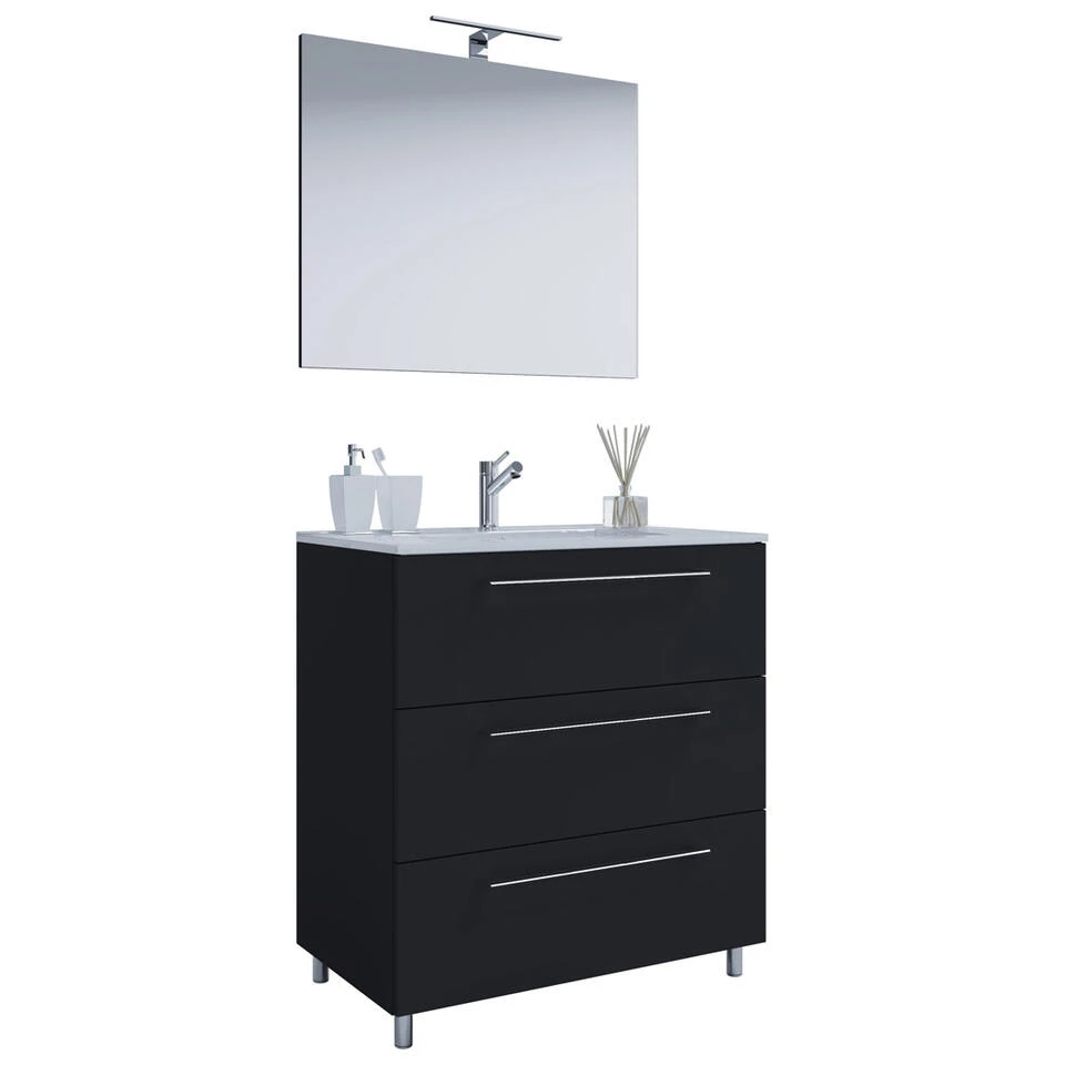 Schubo badkamer spiegel 60 cm zonder verlichting, zwart. 1 badmeubel met wastafel zonder kraan, 3 laden, 1 spiegel. Binnen: 3 laden. Spiegel: 59×60. Je ontvangt meubels van een goede kwaliteit met een aangenaam comfort, gemaakt in een stijlvol en mooi design. Onze meubels zijn zeer aantrekkelijk geprijsd. Creëer uw eigen persoonlijke stijl met een nieuw meubel. Combineer met kleinmeubels of een paar mooie woonaccessoires. Hier verkrijg je de nieuwe woningtrends, zoals je ze in tijdschriften en magazines ziet. Bij ons vindt u unieke, praktische en comfortabele meubels met elk zijn eigen, mooi en apart design.