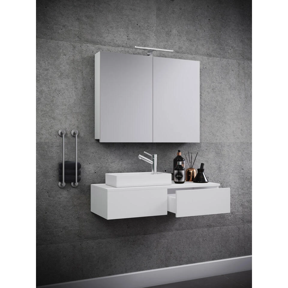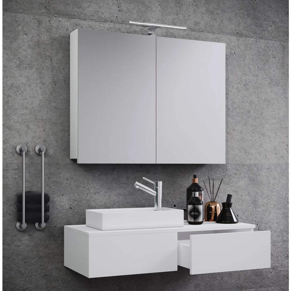 Gudas badkamer spiegelkast zonder verlichting, wit. 1 badmeubel met wastafel zonder kraan, 1 lade, 1 spiegelkast. Binnen: 2 vakken, 1 lade. Spiegel: 59x80x12. Je ontvangt meubels van een goede kwaliteit met een aangenaam comfort, gemaakt in een stijlvol en mooi design. Onze meubels zijn zeer aantrekkelijk geprijsd. Creëer uw eigen persoonlijke stijl met een nieuw meubel. Combineer met kleinmeubels of een paar mooie woonaccessoires. Hier verkrijg je de nieuwe woningtrends, zoals je ze in tijdschriften en magazines ziet. Bij ons vindt u unieke, praktische en comfortabele meubels met elk zijn eigen, mooi en apart design.