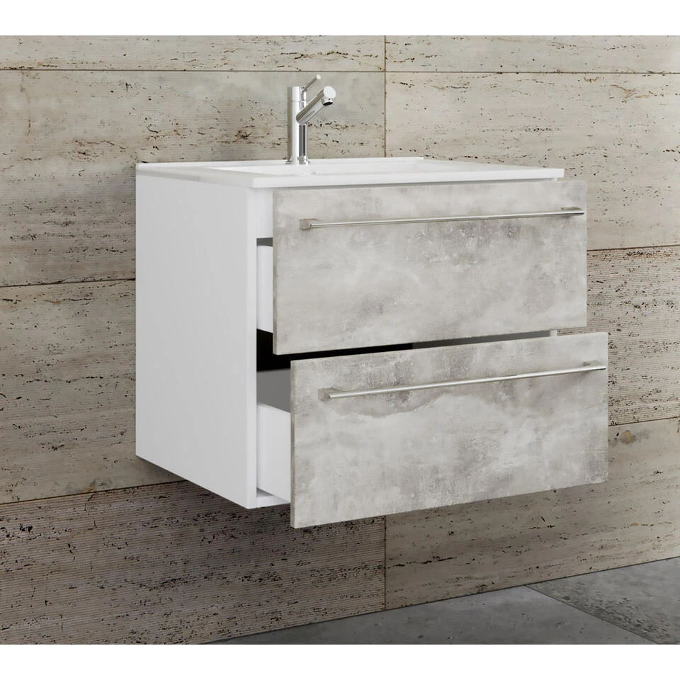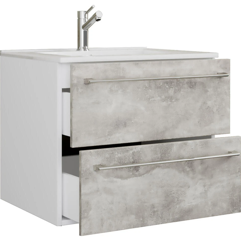 Badinos wastafel 60 cm, wit, betonlook. 1 badmeubel met wastafel zonder kraan, 2 laden 60 cm. Binnen: 2 laden. Je ontvangt meubels van een goede kwaliteit met een aangenaam comfort, gemaakt in een stijlvol en mooi design. Onze meubels zijn zeer aantrekkelijk geprijsd. Creëer uw eigen persoonlijke stijl met een nieuw meubel. Combineer met kleinmeubels of een paar mooie woonaccessoires. Hier verkrijg je de nieuwe woningtrends, zoals je ze in tijdschriften en magazines ziet. Bij ons vindt u unieke, praktische en comfortabele meubels met elk zijn eigen, mooi en apart design.
