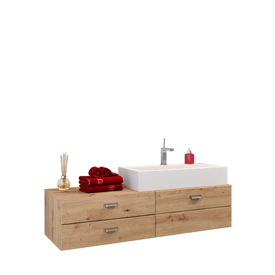 GeoBad wastafel 2 laden, 1 klep, wastafel zonder kraan eiken decor, mineraal gegoten wastafel wit . Kleur behuizing: artisan eiken melamine. Kleur voorkant: artisan eik TZ. Kleur afwerking: gegoten minerale wastafel wit. Je ontvangt meubels van een goede kwaliteit met een aangenaam comfort, gemaakt in een stijlvol en mooi design. Onze meubels zijn zeer aantrekkelijk geprijsd. Creëer uw eigen persoonlijke stijl met een nieuw meubel. Combineer met kleinmeubels of een paar mooie woonaccessoires. Hier verkrijg je de nieuwe woningtrends, zoals je ze in tijdschriften en magazines ziet. Bij ons vindt u unieke, praktische en comfortabele meubels met elk zijn eigen, mooi en apart design.