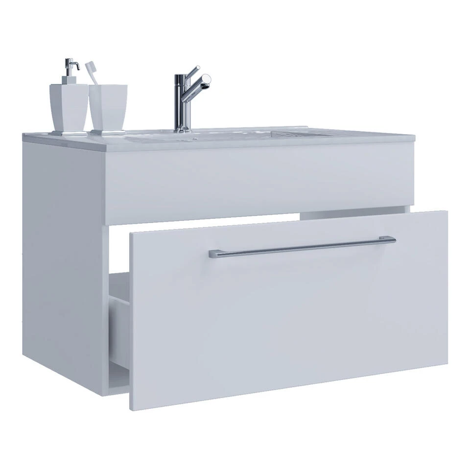 Nywo wastafel 60 cm, 1 lade, wit. 1 badmeubel met wastafel zonder kraan, 1 lade 60 cm. Binnen: 1 lade. Je ontvangt meubels van een goede kwaliteit met een aangenaam comfort, gemaakt in een stijlvol en mooi design. Onze meubels zijn zeer aantrekkelijk geprijsd. Creëer uw eigen persoonlijke stijl met een nieuw meubel. Combineer met kleinmeubels of een paar mooie woonaccessoires. Hier verkrijg je de nieuwe woningtrends, zoals je ze in tijdschriften en magazines ziet. Bij ons vindt u unieke, praktische en comfortabele meubels met elk zijn eigen, mooi en apart design.