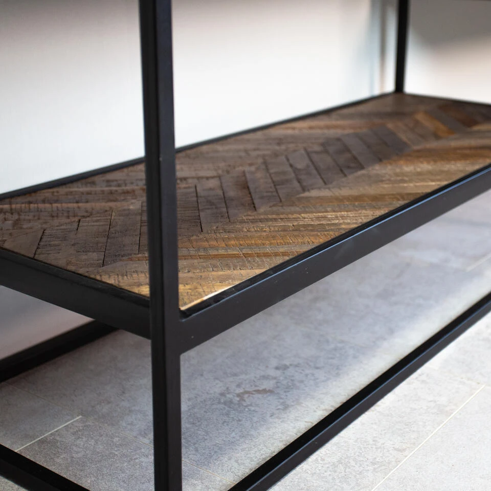 Is dit geen prachtig industrieel TV-meubel in chic visgraat? TV-meubel Sylvie maakt jouw interieur helemaal af! Het meubel past perfect in ieder interieur dankzij de prachtige uitstraling; industrieel, stoer en chic! Daarnaast biedt TV-meubel Sylvie voldoende opbergruimte voor jouw televisiekastje, tijdschriften en accessoires dankzij de leggers.