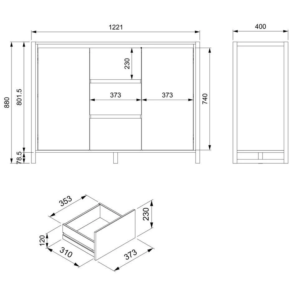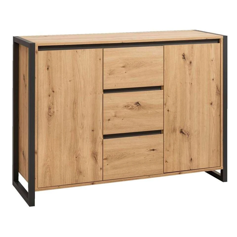 Kast Denver 2 heeft 3 laden en 2 deuren in eikenkleur/antraciet en biedt daardoor veel opbergruimte. Deze kast heeft een landelijk stoere look met een antracietgrijs frame. Daarnaast is hij makkelijk te combineren met andere meubelen. Zet er een mooie vaas met bloemen of een leuke fotolijst op! Dit meubel is gemaakt van spaanplaat, het frame van MDF. De siliconen druppels die erbij geleverd worden zorgen voor een zachte sluiting.Â