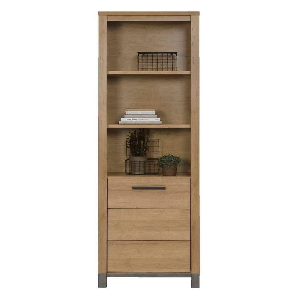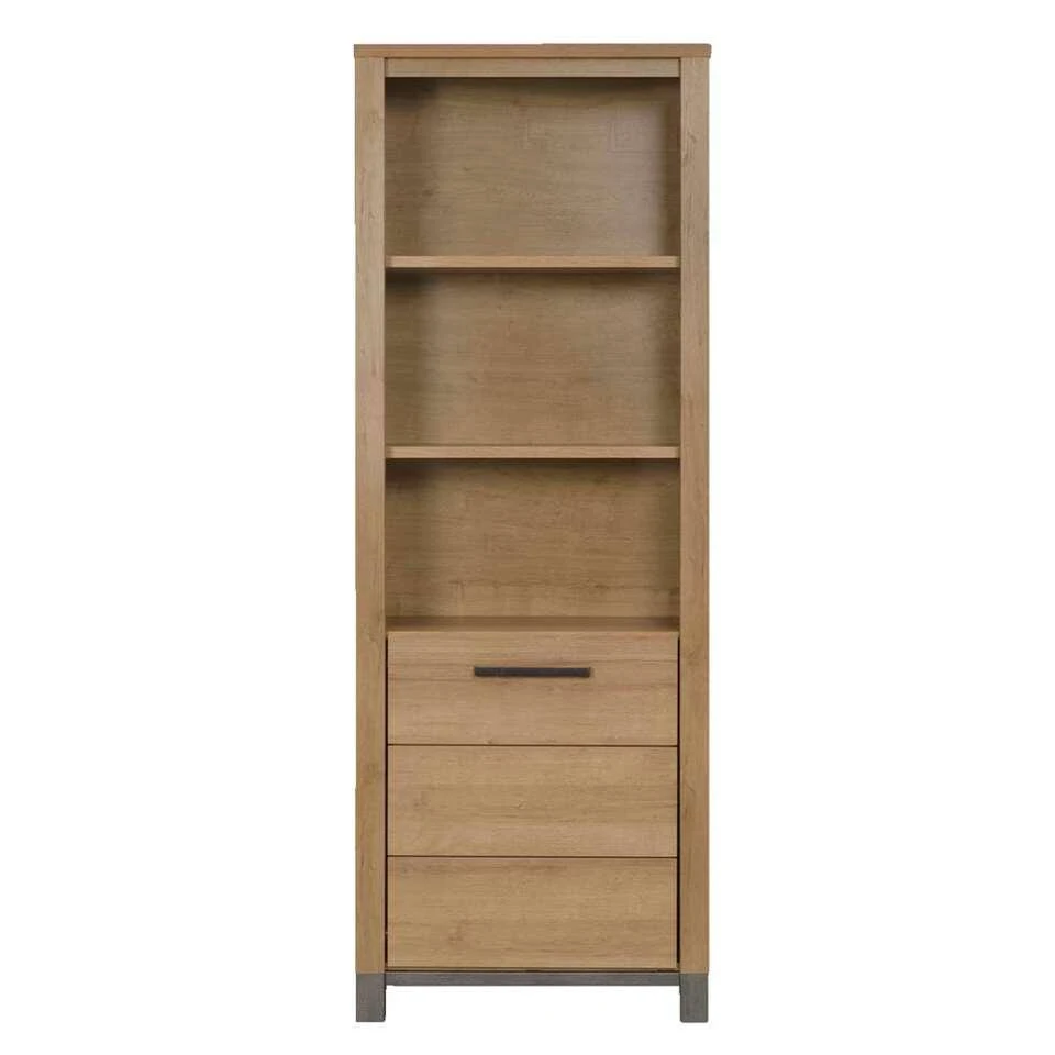 De prachtige kast Finn heeft een stoere uitstraling en is verkrijgbaar in een mooie licht eikenkleur uitvoering. Deze mooie kast combineert perfect met andere houten meubelen in huis. Kast Finn heeft 1 deur en een eikenhouten patroon. De kast is licht eiken van kleur en het onderstel is donkergrijs, een mooie en opvallende combinatie. De boekenkast heeft de afmeting van 40 x 71 x 196 cm (lxbxh). Koop deze mooie eikenlook-kast nu zonder zorgen en laat ‘m eenvoudig thuisbezorgen.