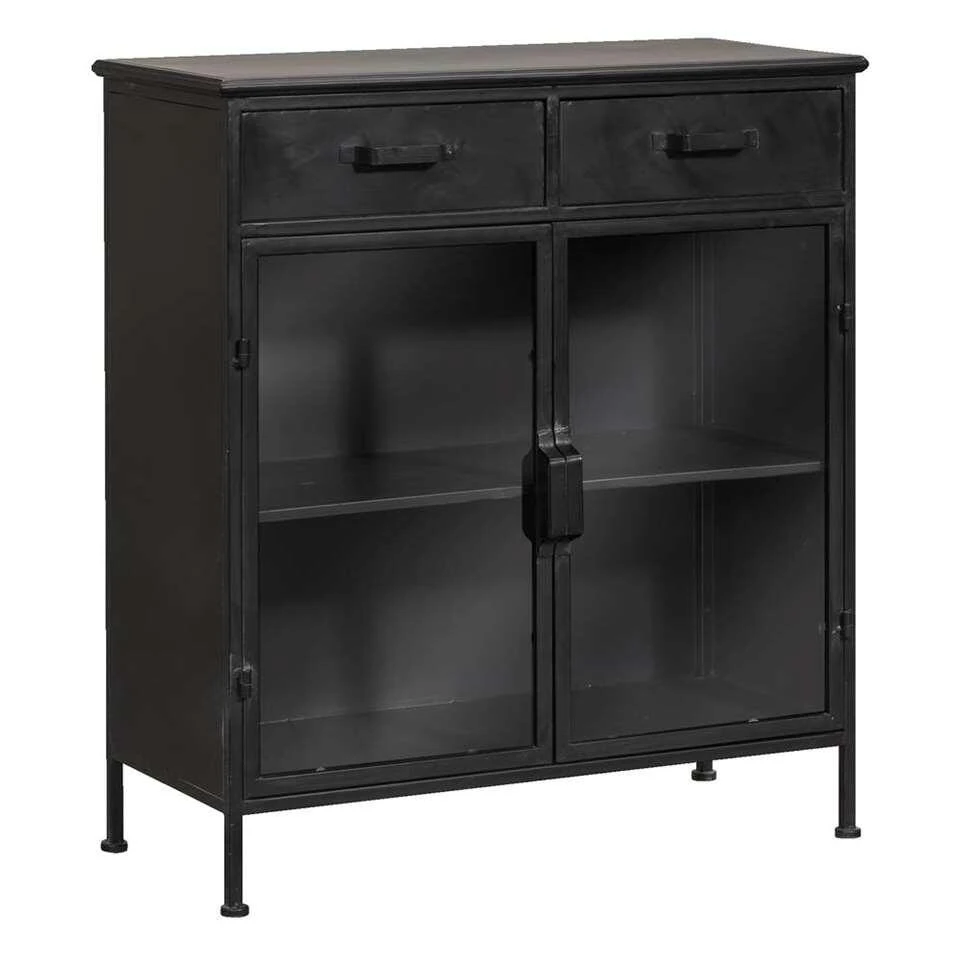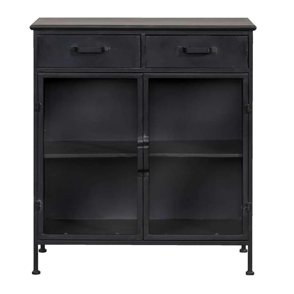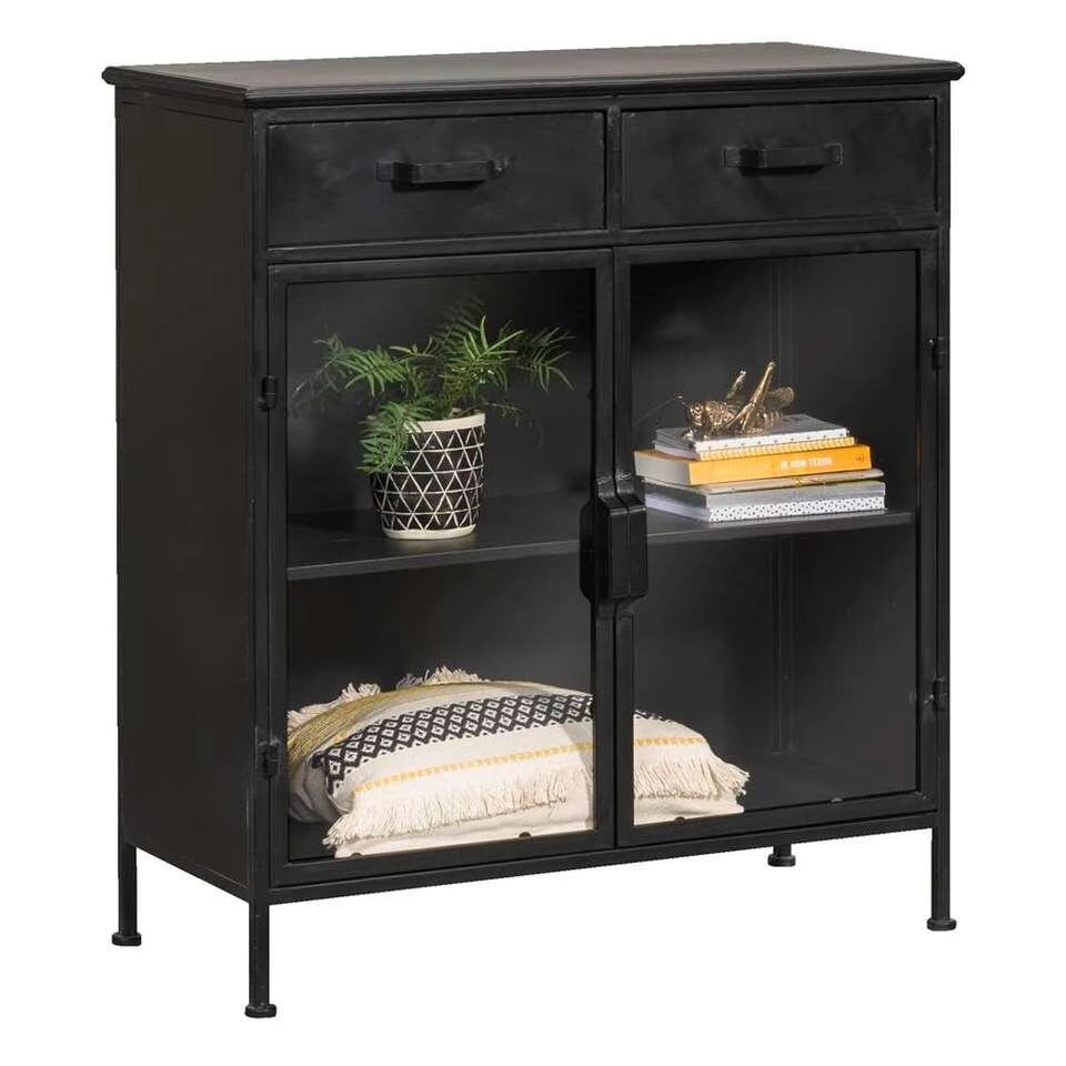 Kast Jayden is een stoer kastje. De kast is zwart van kleur en gemaakt van metaal. Het kastje heeft 4 vakken achter twee deurtjes én twee lades. Zo heb je voldoende ruimte voor diverse spulletjes, die je in het zicht of juist uit het zicht kunt opbergen. Ideaal voor bijvoorbeeld servies, tafellinnen of diverse woonaccessoires. Kast Jayden is geschikt voor in de hele woning!