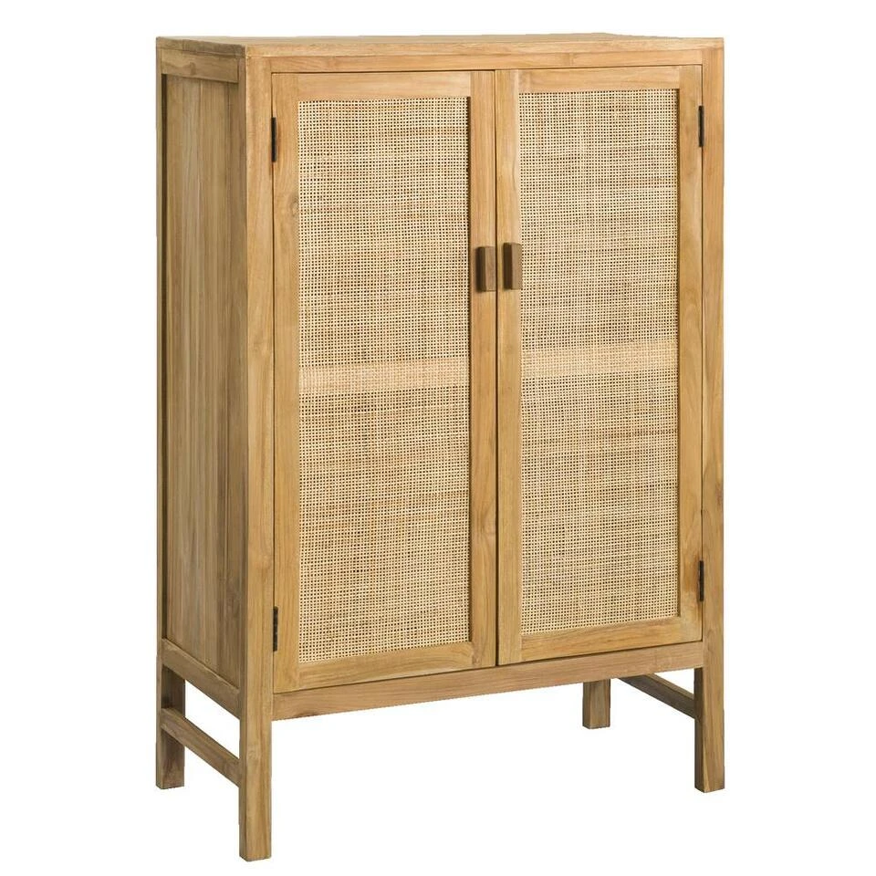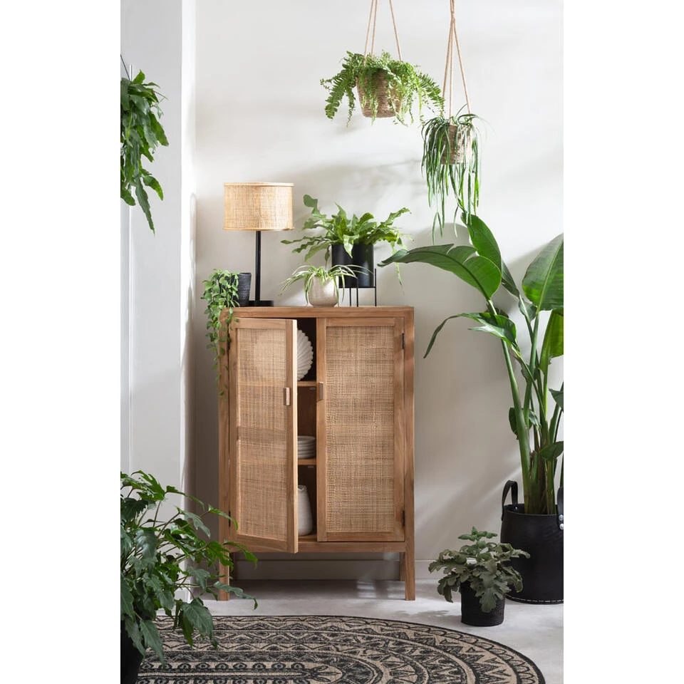 Kast Luna is bruin en is gemaakt van teak met webbing. De kast heeft een afmeting van 120x80x40 cm. Kast Luna is een stoere kast voorzien van 2 deuren. Deze opbergkast is een praktische aanvulling voor elke ruimte. Op de kast is voldoende ruimte voor leuke woonaccessoires. Zet er bijvoorbeeld een kandelaar, een elegante en decoratieve vaas en fotolijstjes op.